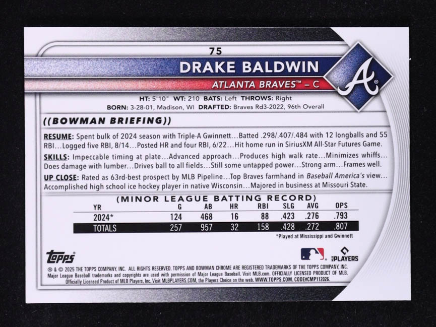 Drake Baldwin 2025 Bowman Chrome Fuchsia Wave Refractors #75 RC #034/299