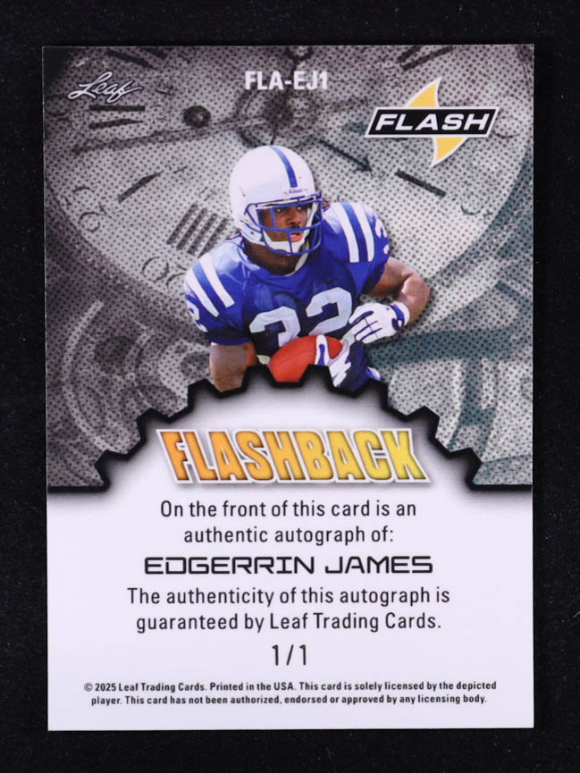Edgerrin James 2025 Leaf Flash Flashback Autographs Super Prismatic Red #FLAEJ1 #1/1
