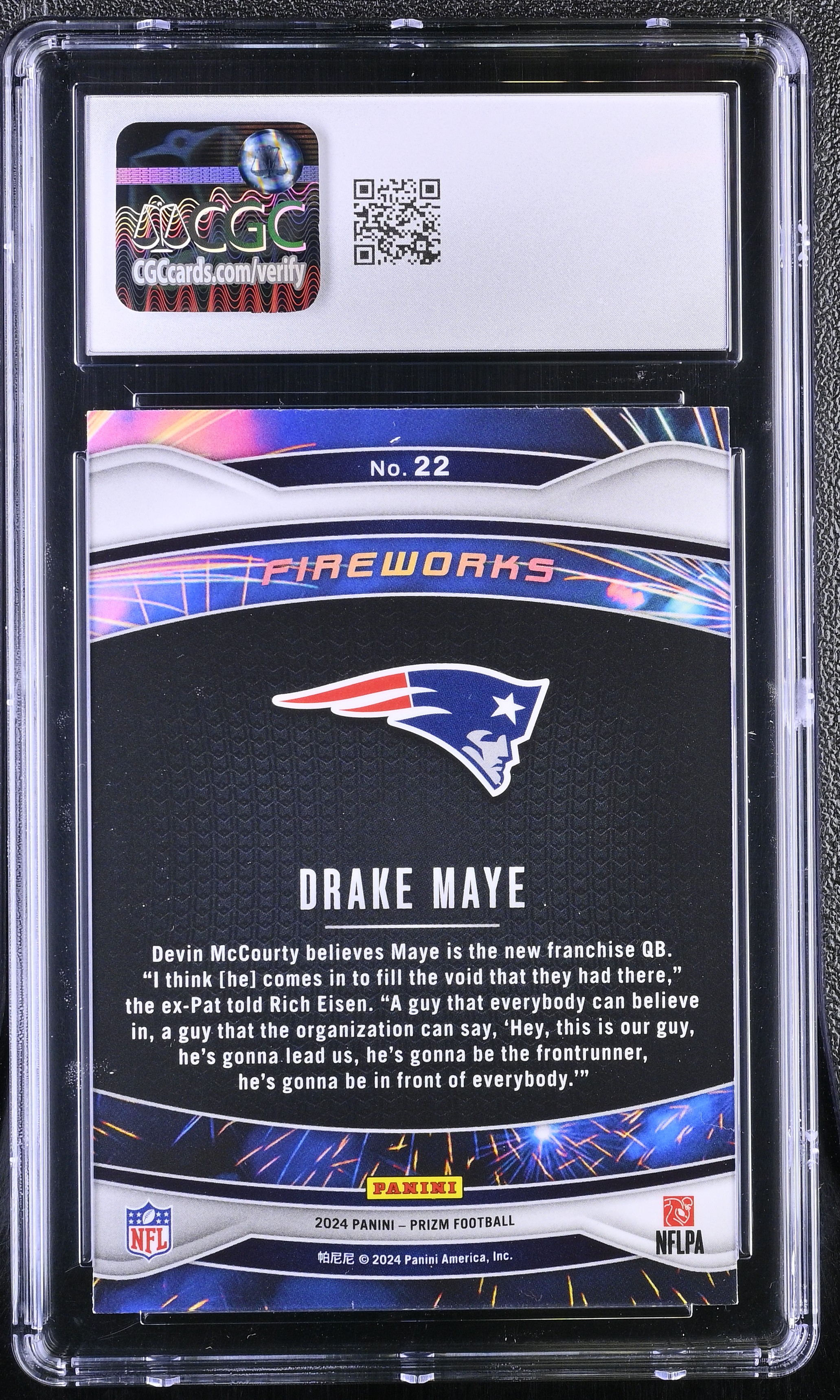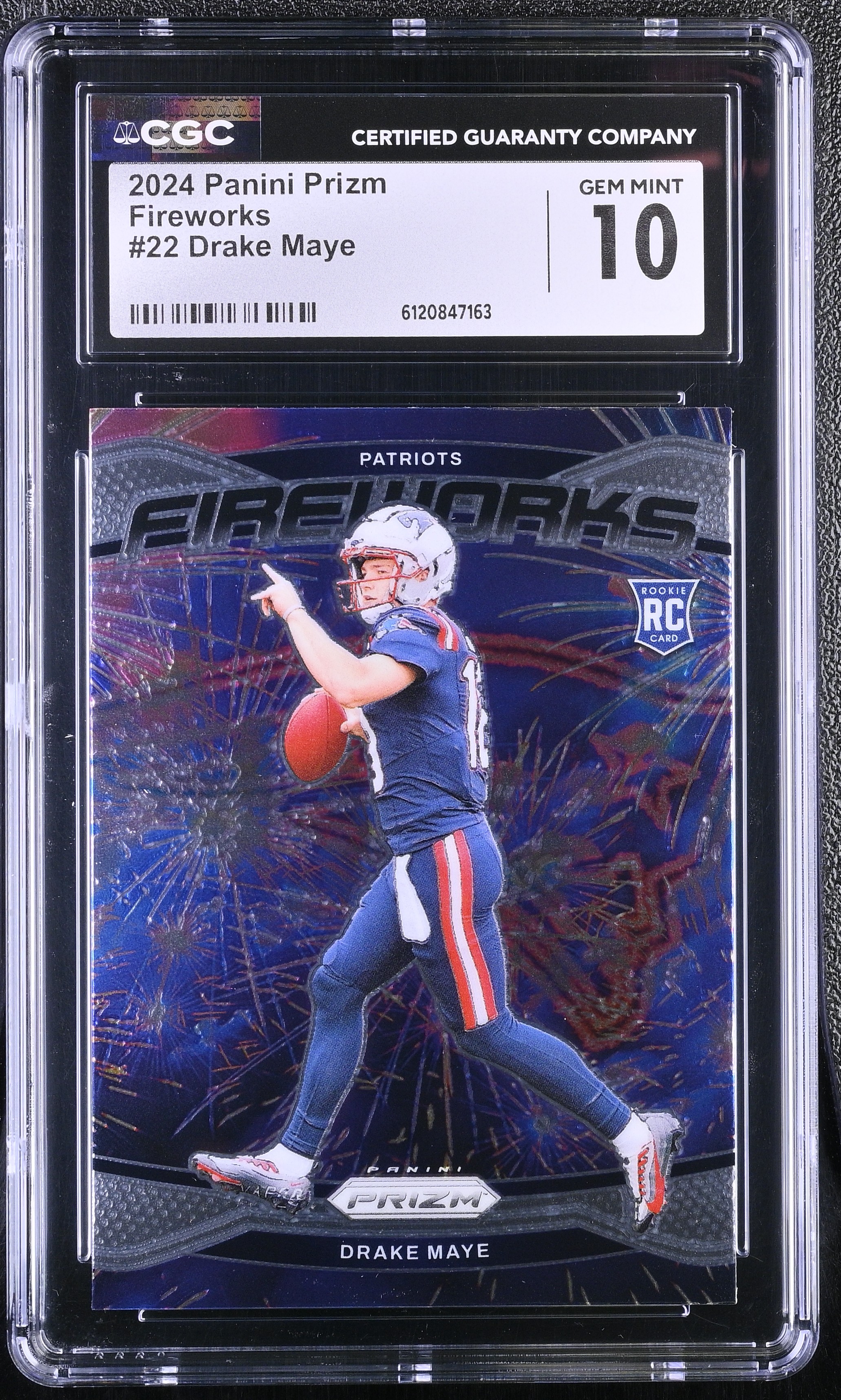 Drake Maye 2024 Panini Prizm Fireworks #22 RC (CGC 10)