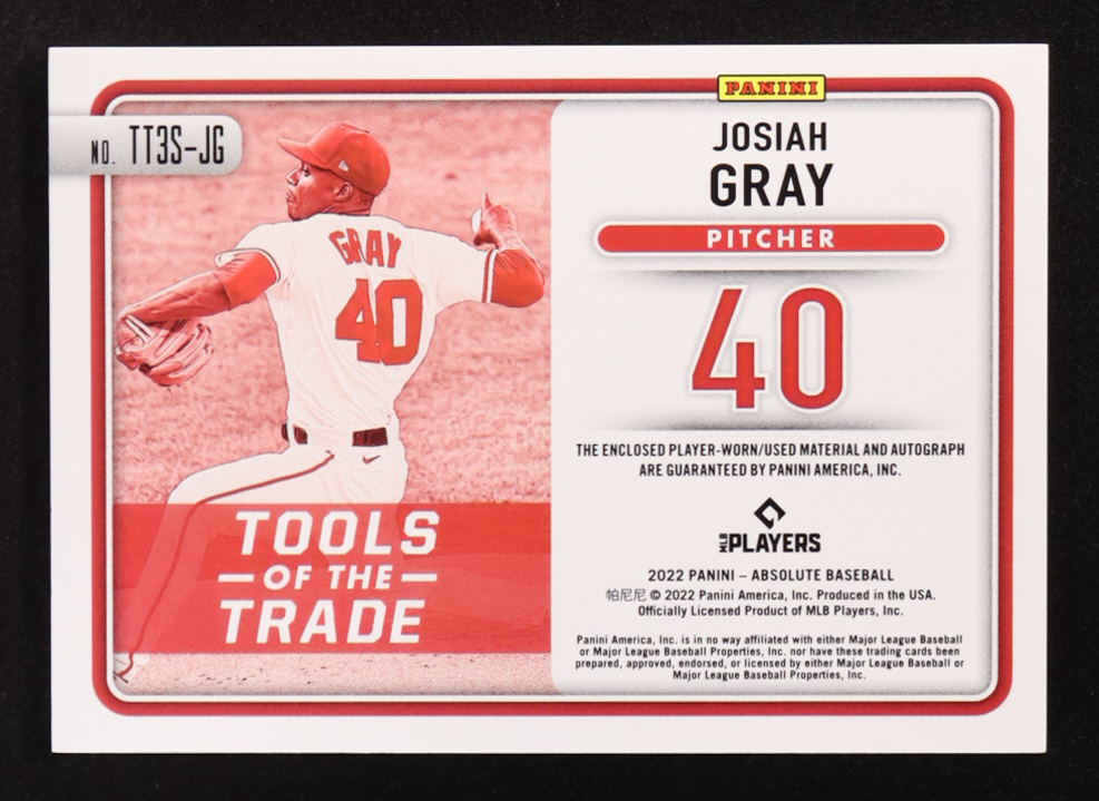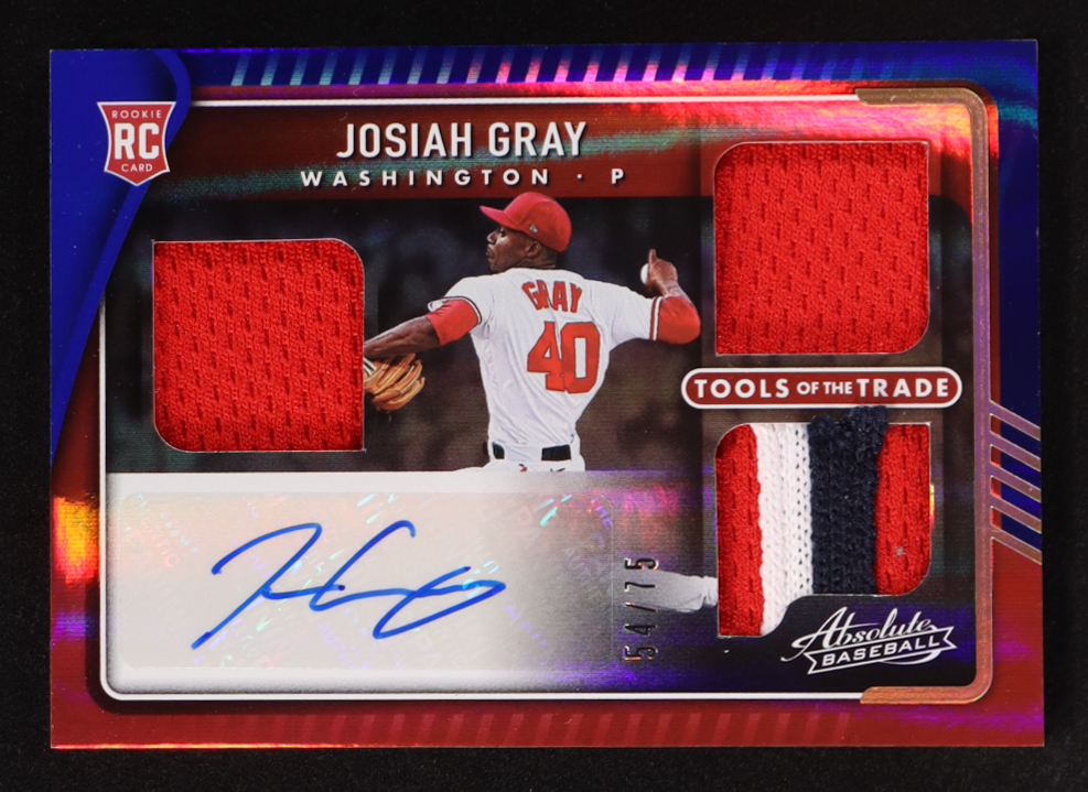 Josiah Gray 2022 Absolute Tools of the Trade 3 Swatch Signatures Spectrum Blue #12 #54/75 RC