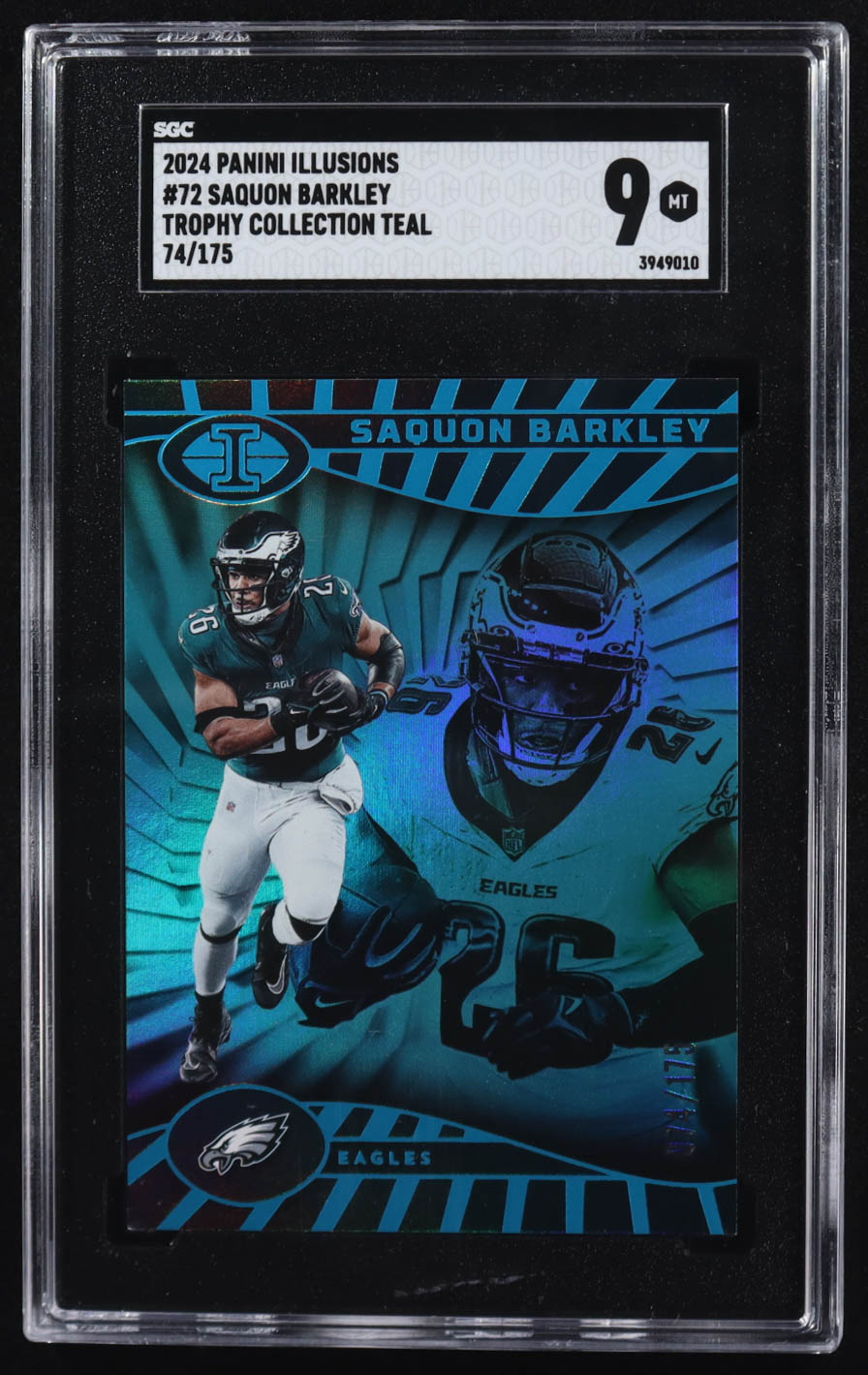 Saquon Barkley 2024 Panini Illusions Trophy Collection Teal #72 #74/175 (SGC 9)