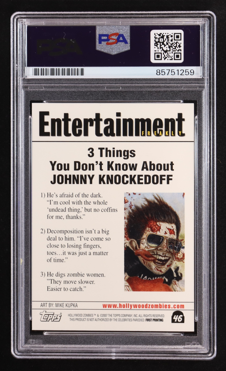Johnny Knoxville Signed 2007 Topps Hollywood Zombies Johnny Knockedoff #46 (PSA)