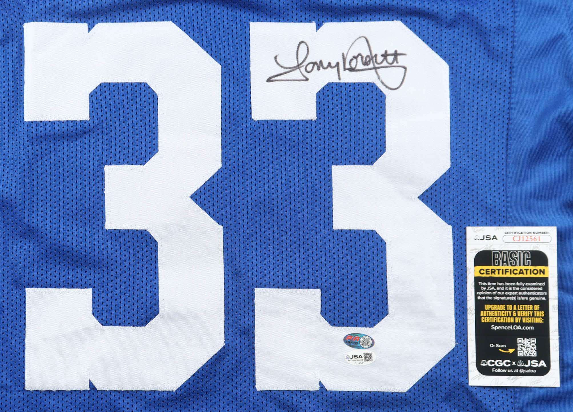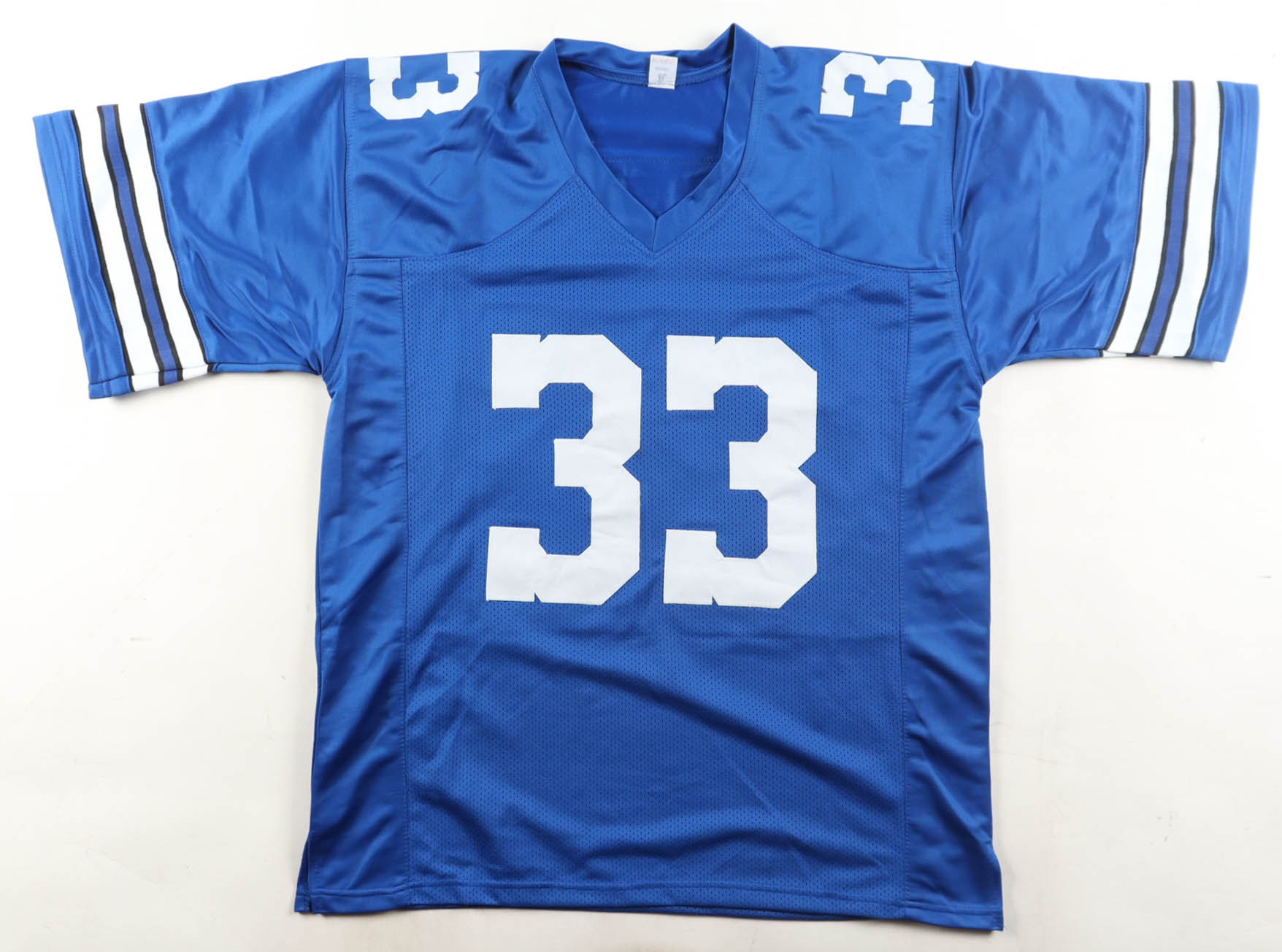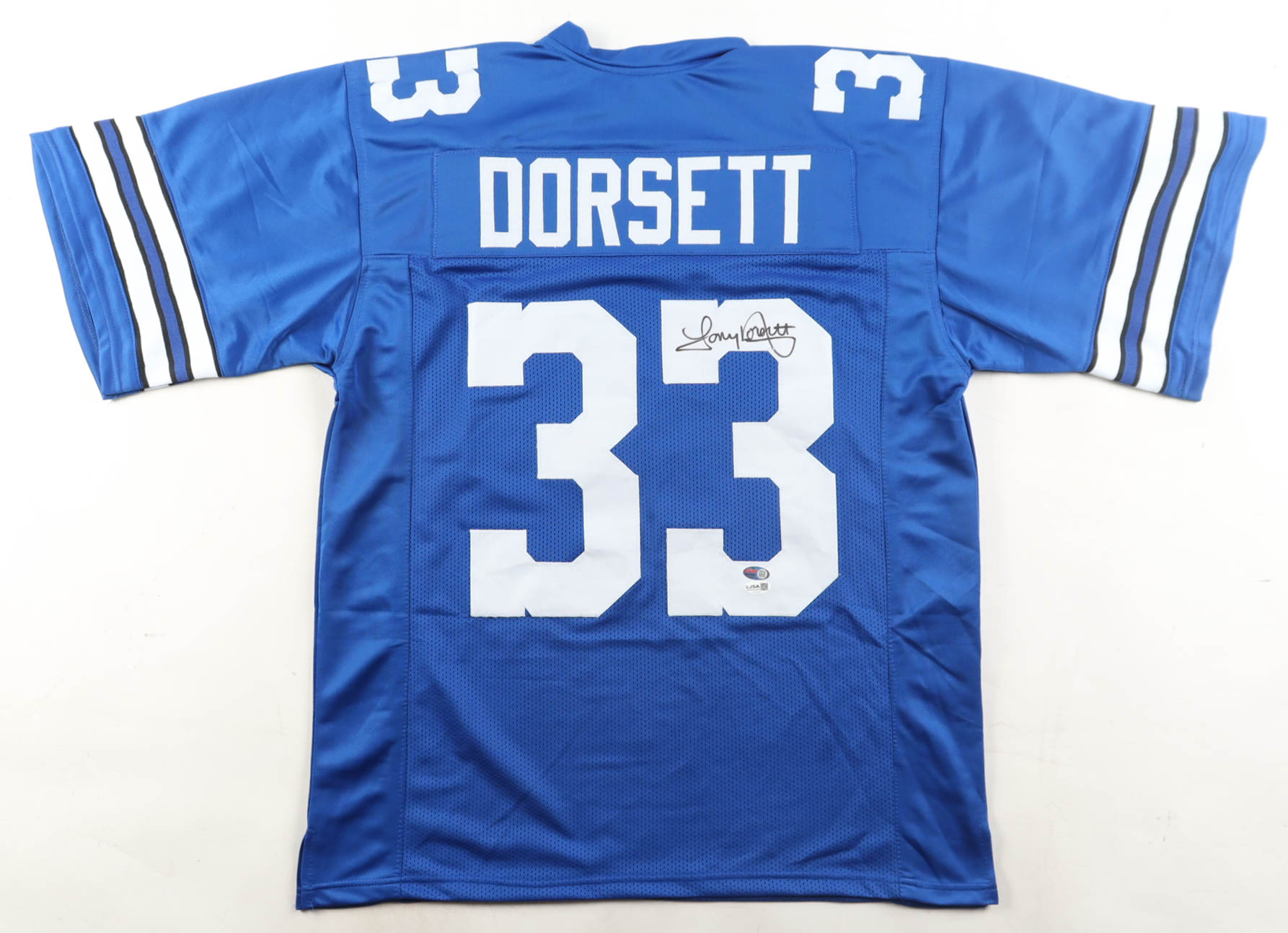 Custom jersey with everything sewn on, size XL. Hand-signed by Tony Dorsett (HOF).