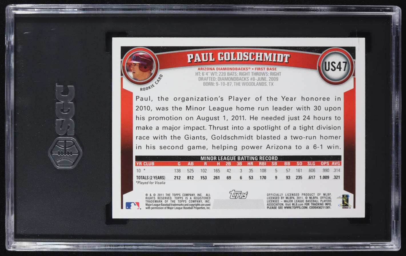 Paul Goldschmidt 2011 Topps Update #US47 RC (SGC 9)