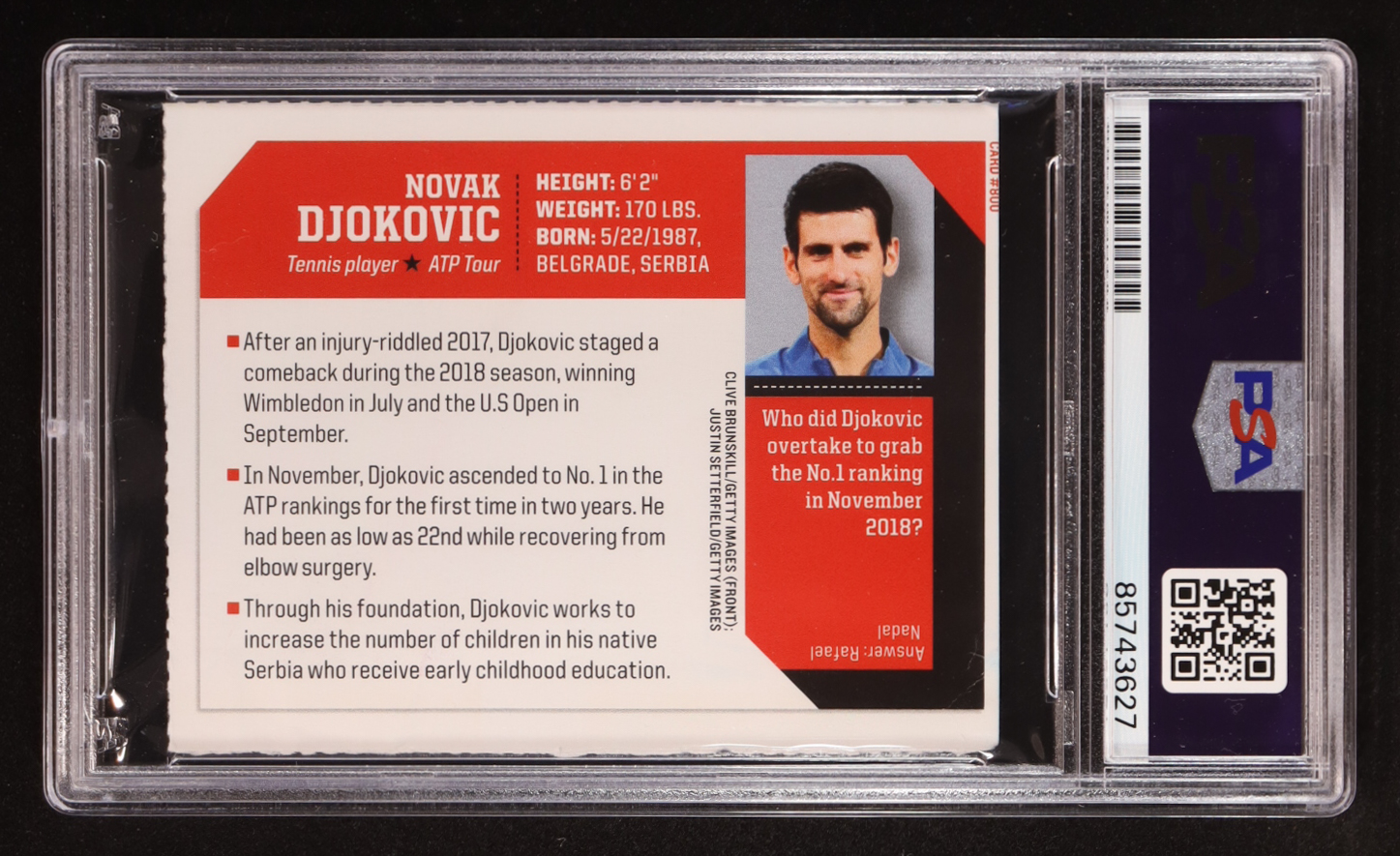 Card has been hand-signed by Novak Djokovic. Please see photos for more details regarding the condition of the card.