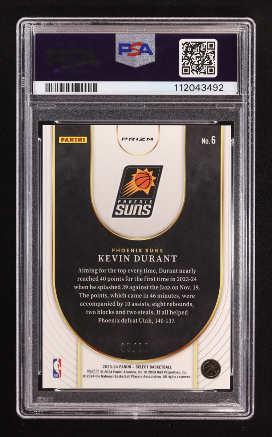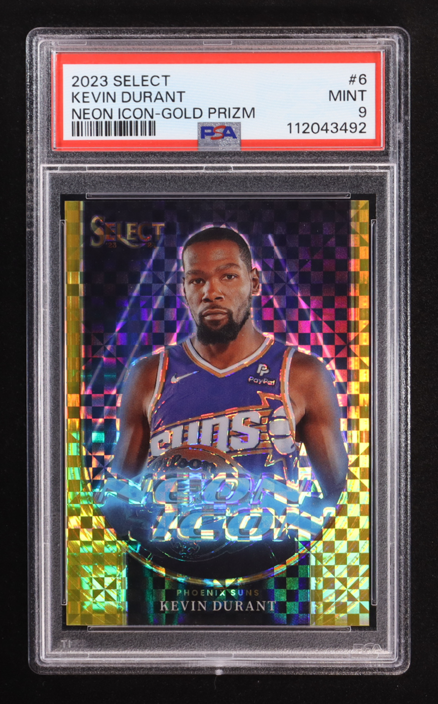 Kevin Durant 2023-24 Select Neon Icon Gold Prizms #6 #05/10 (PSA 9)