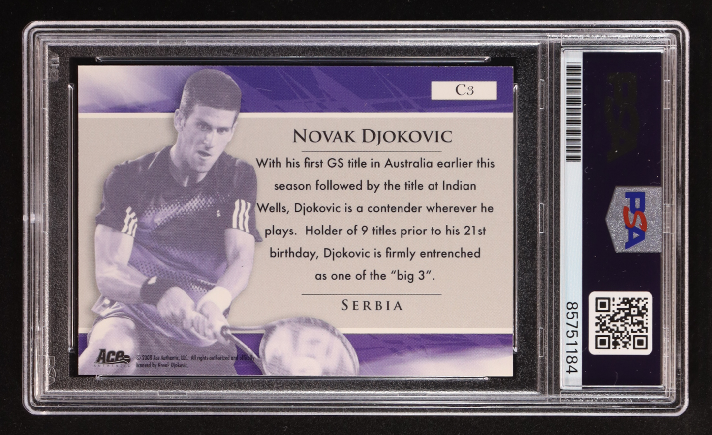 Novak Djokovic Signed 2008 Ace Contender #C3 (PSA)
