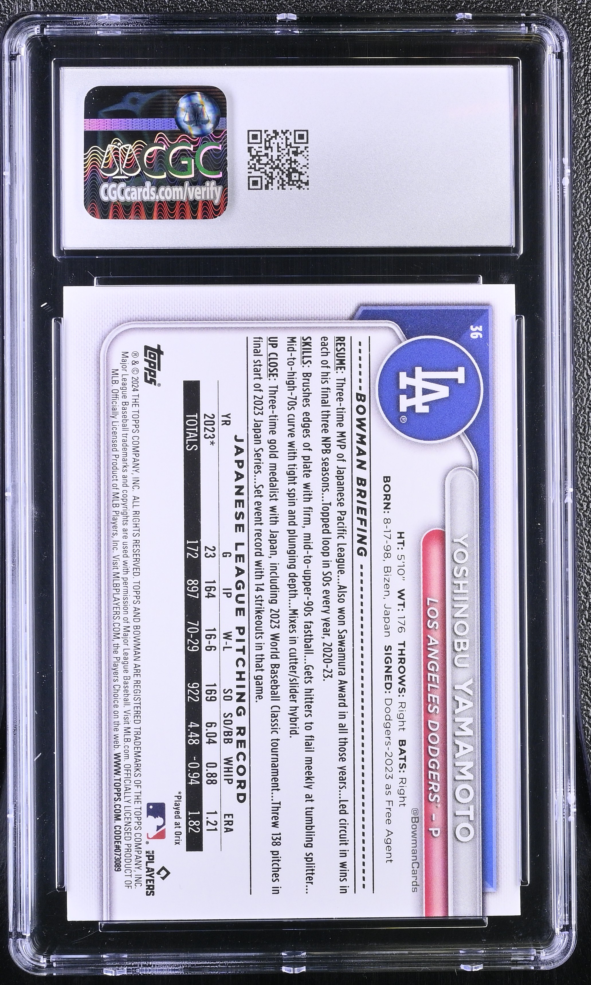 Yoshinobu Yamamoto 2024 Bowman #36 RC (CGC 10)