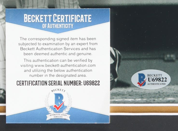 The autograph includes an official Beckett Authentication Services serially-numbered hologram and matching COA for authenticity purposes.