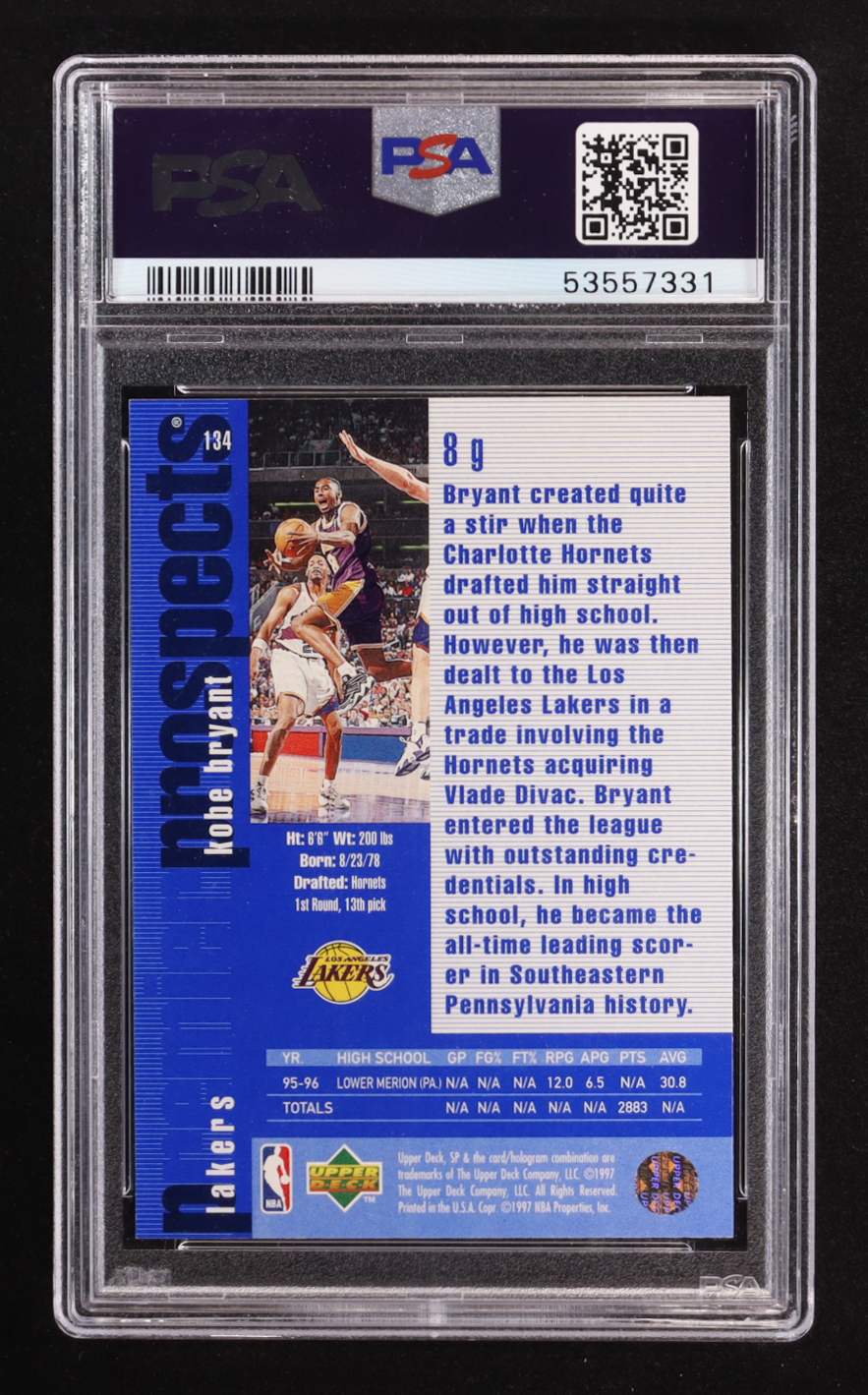 Kobe Bryant 1996-97 SP #134 RC (PSA 9)