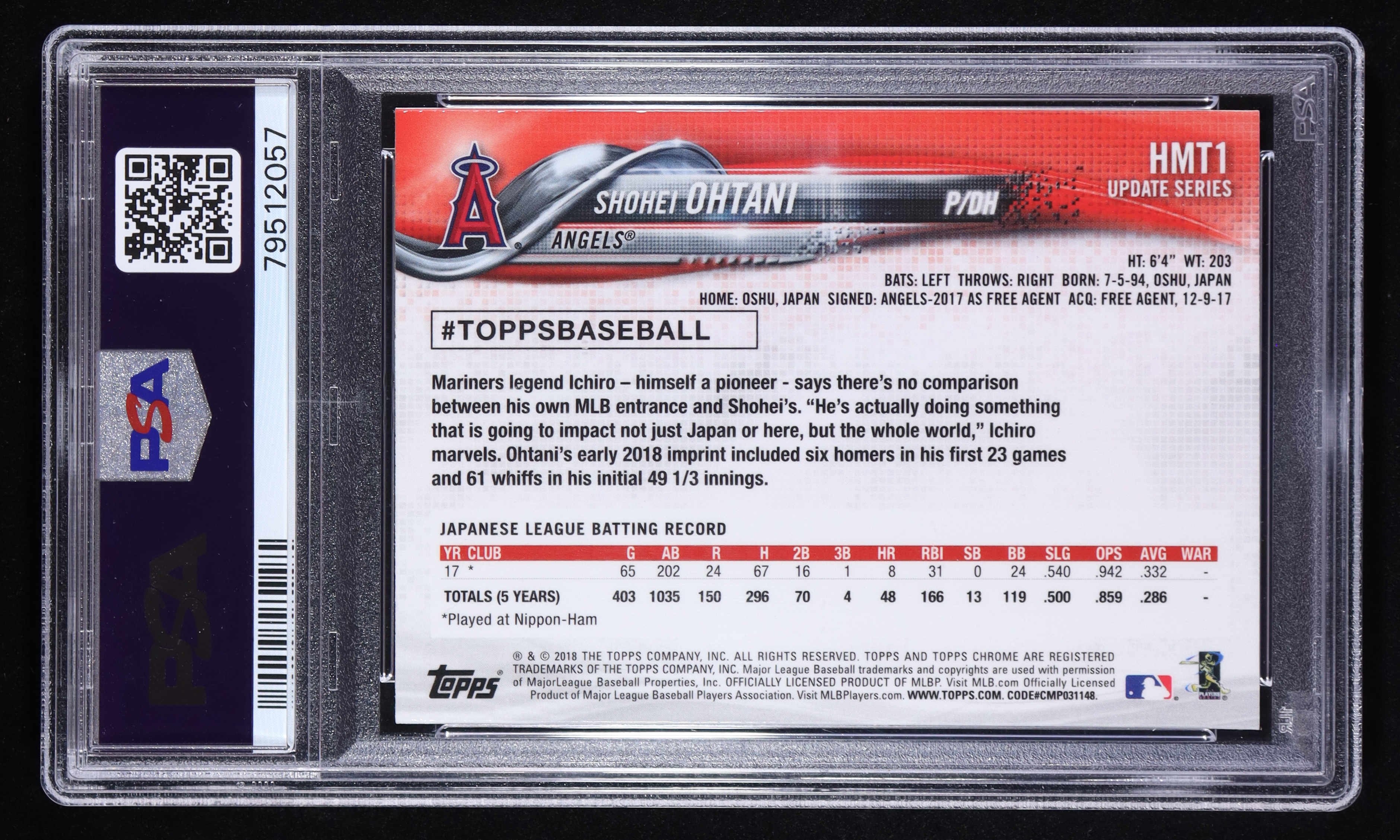 Shohei Ohtani 2018 Topps Chrome Update #HMT1 RC (PSA 10)