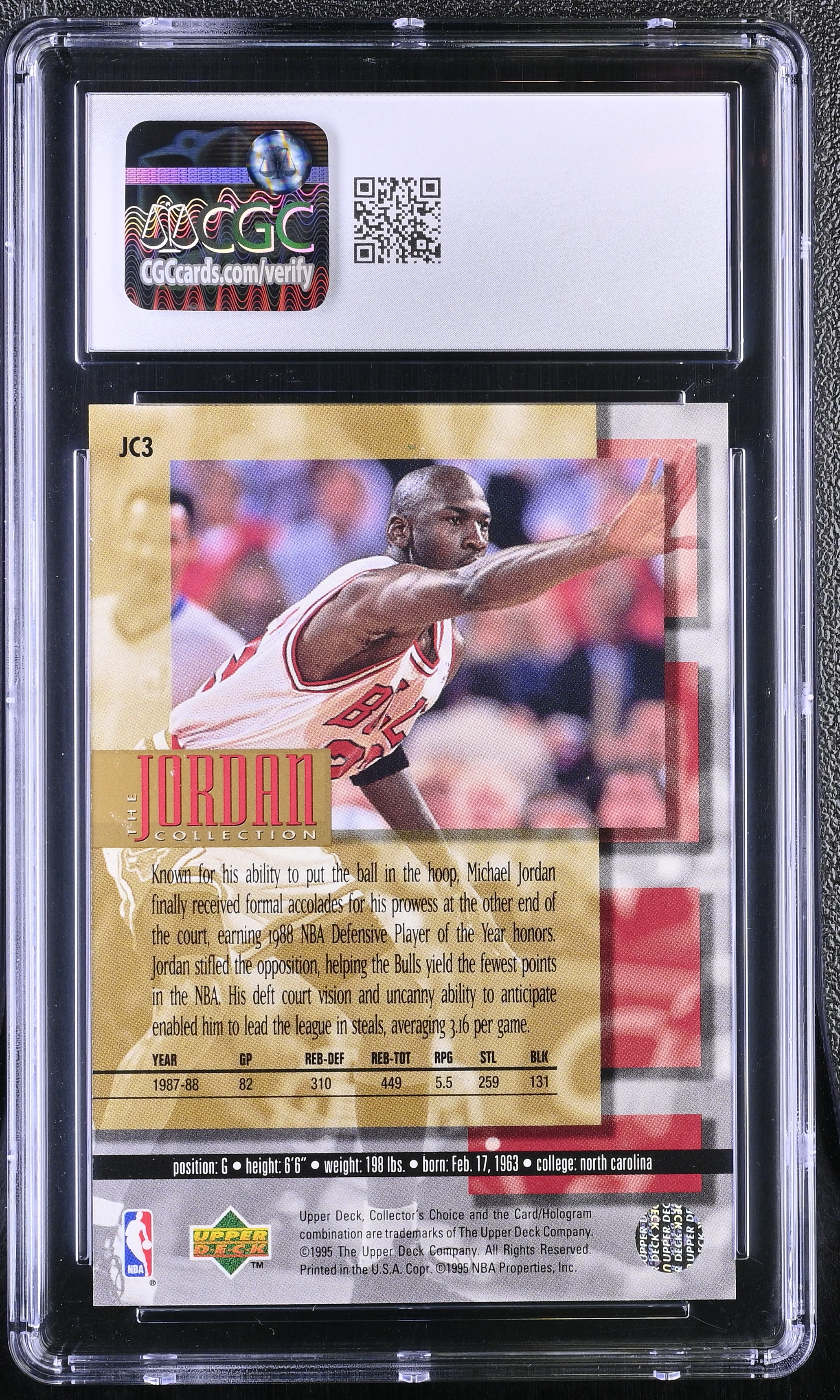 Michael Jordan 1995-96 Collector's Choice Jordan Collection 1988 NBA Defensive POY #JC3 (CGC 9.5)