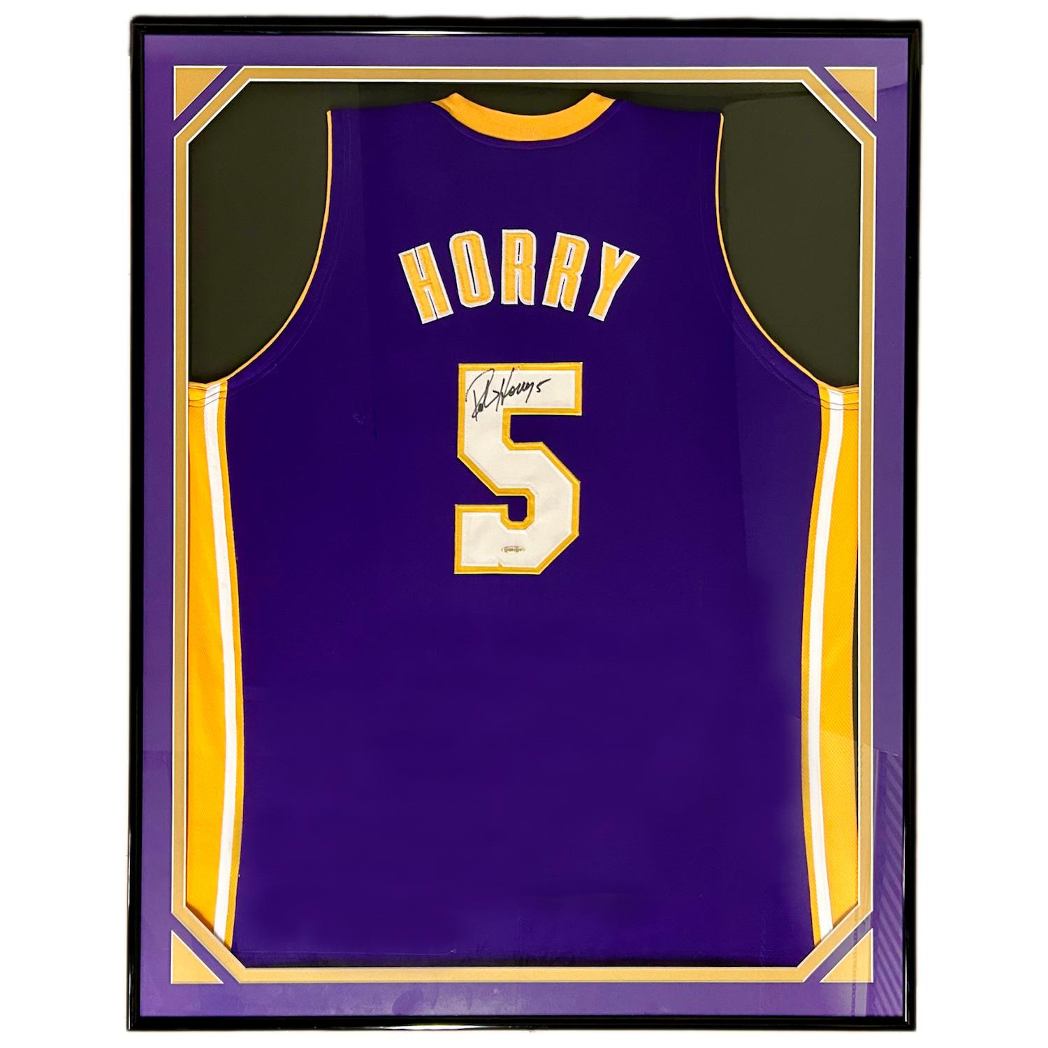 Custom frame measures 34" x 42" in size and features a jersey that has been hand-signed by Robert Horry (HOF).