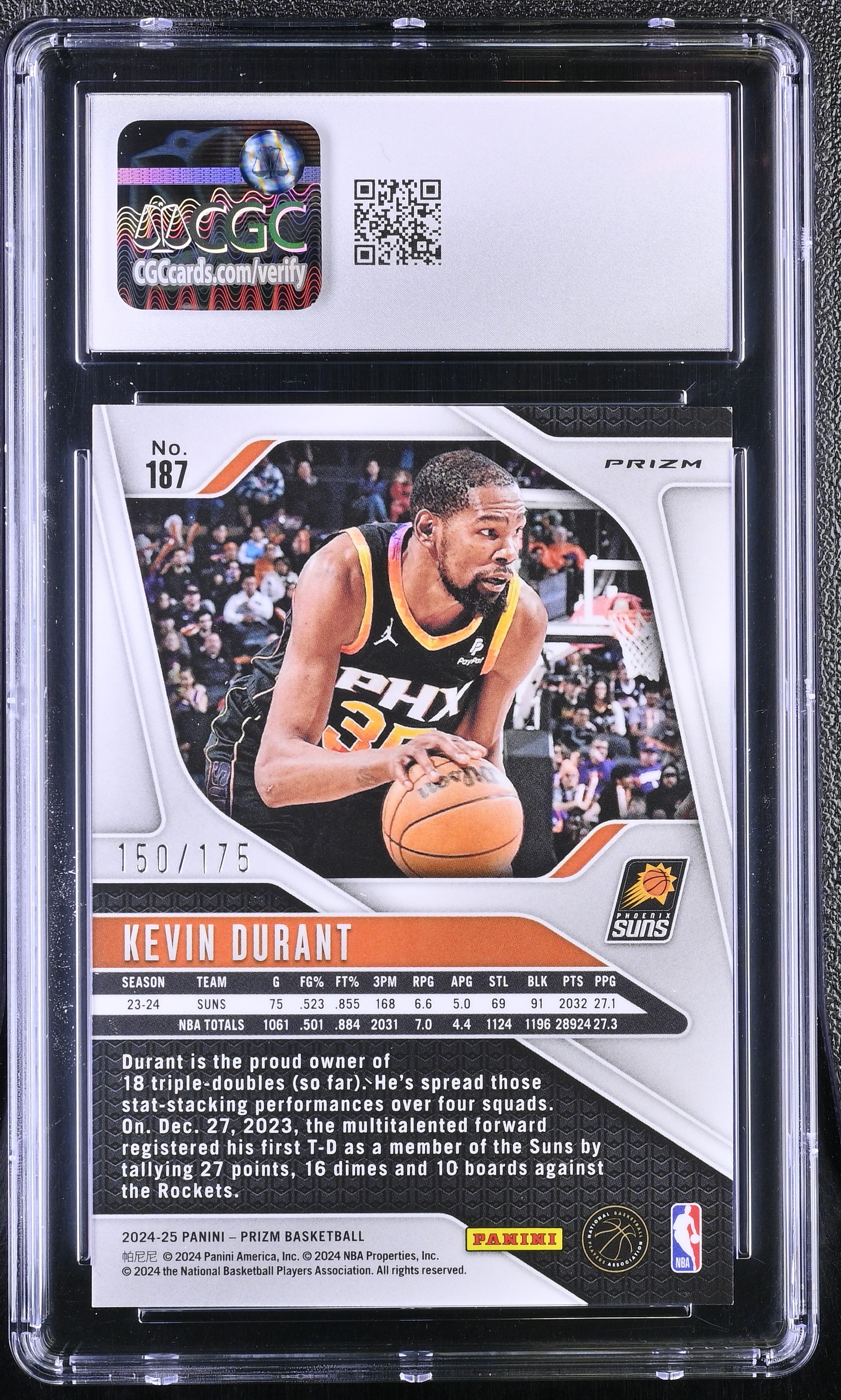 Kevin Durant 2024-25 Panini Prizm Prizms White #187 #150/175 (CGC 9)