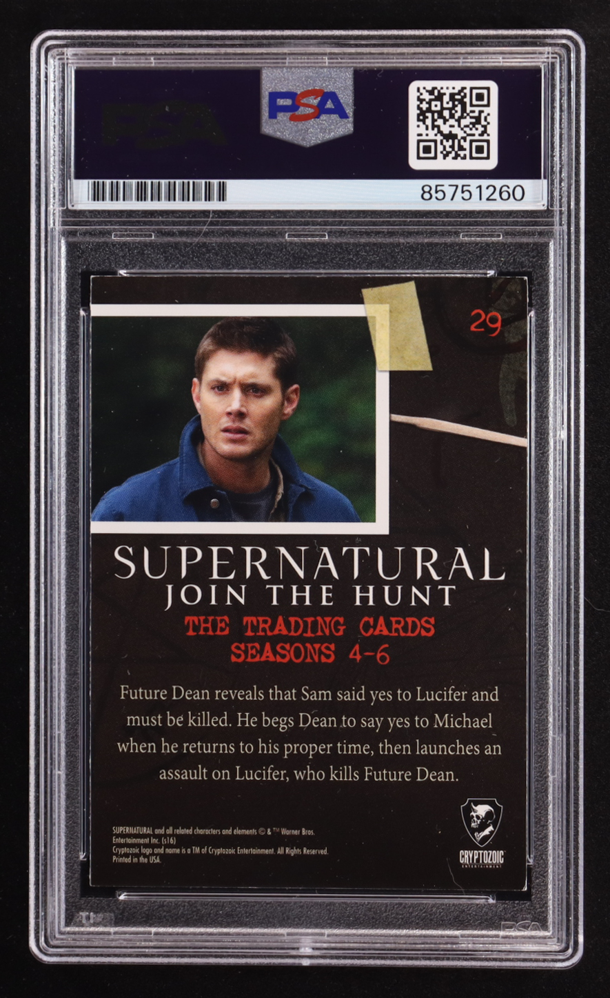 Jensen Ackles Signed 2016 Cryptozoic Supernatural Join The Hunt The End Seasons 4-6 #29 (PSA)