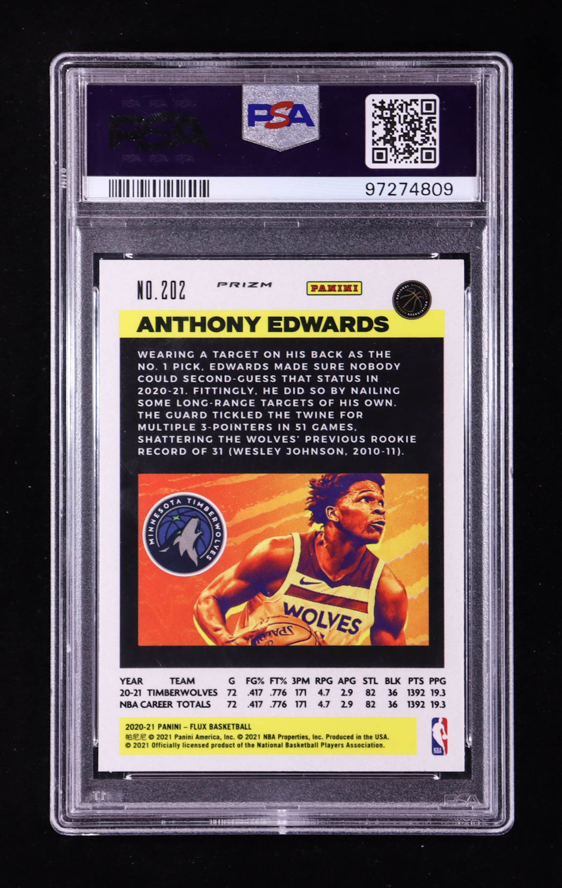 Anthony Edwards 2020-21 Panini Flux Factory Pulsar #202 RC (PSA 10)