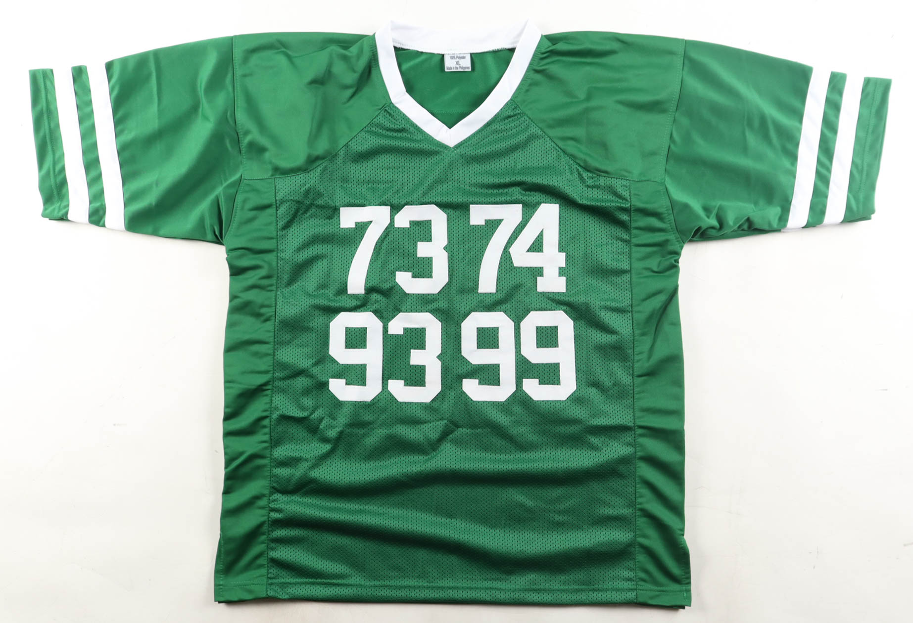 Custom jersey, everything is sewn on, size XL. Hand-signed by Mark Gastineau, Marty Lyons, Joe Klecko, and Abdul Salaam. Please note, some signatures have bled. See photos regarding the condition of the item.