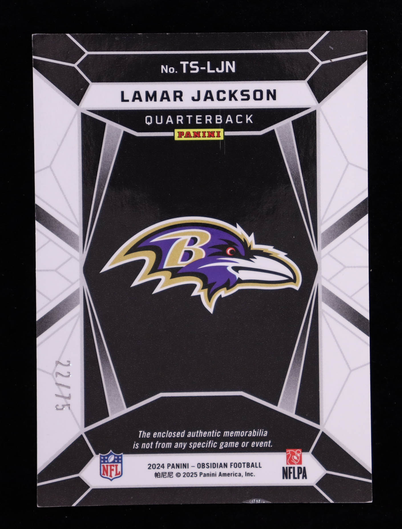 Lamar Jackson 2024 Panini Obsidian Trifecta Swatches Red #16 #22/75