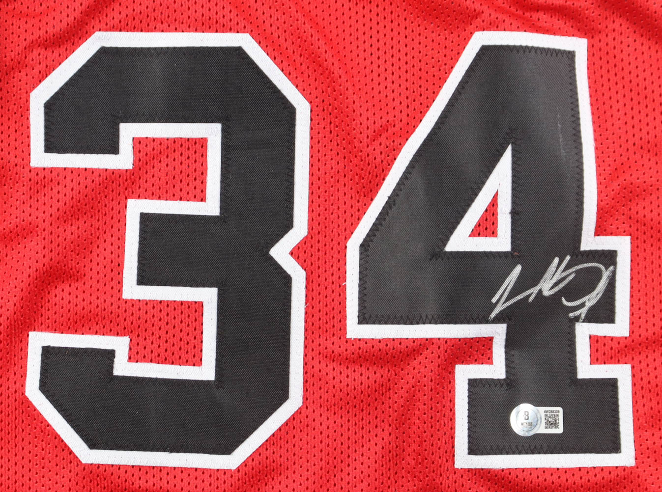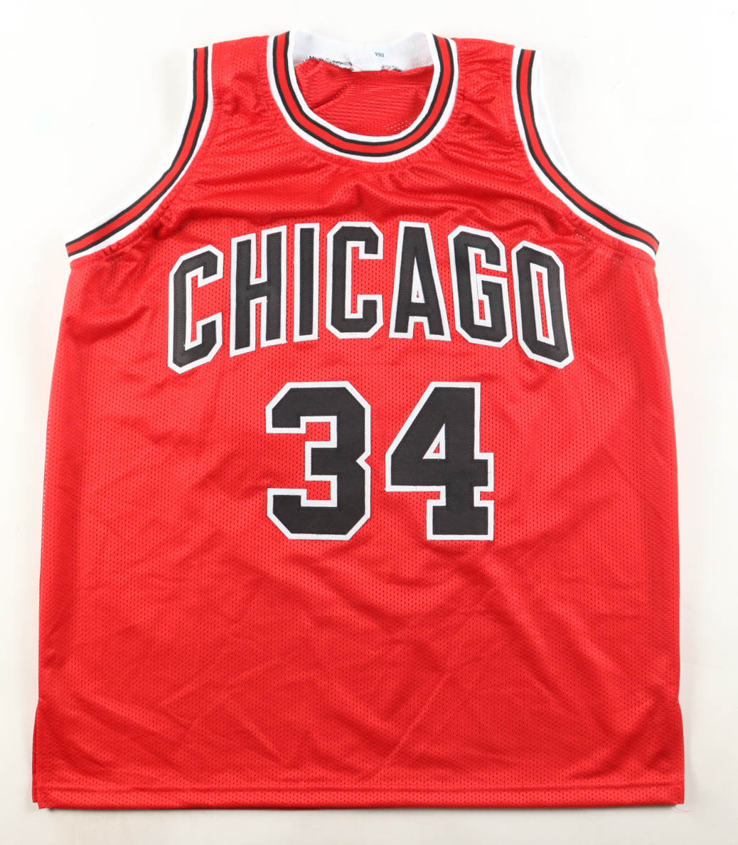 Custom jersey with everything sewn on, size XL. Hand-signed by Charles Oakley.