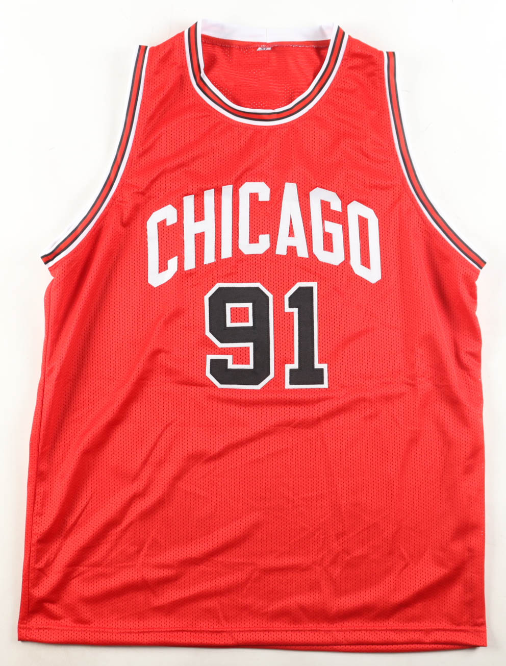 Custom jersey everything is sewn on, size XL. Hand-signed by Dennis Rodman (HOF).