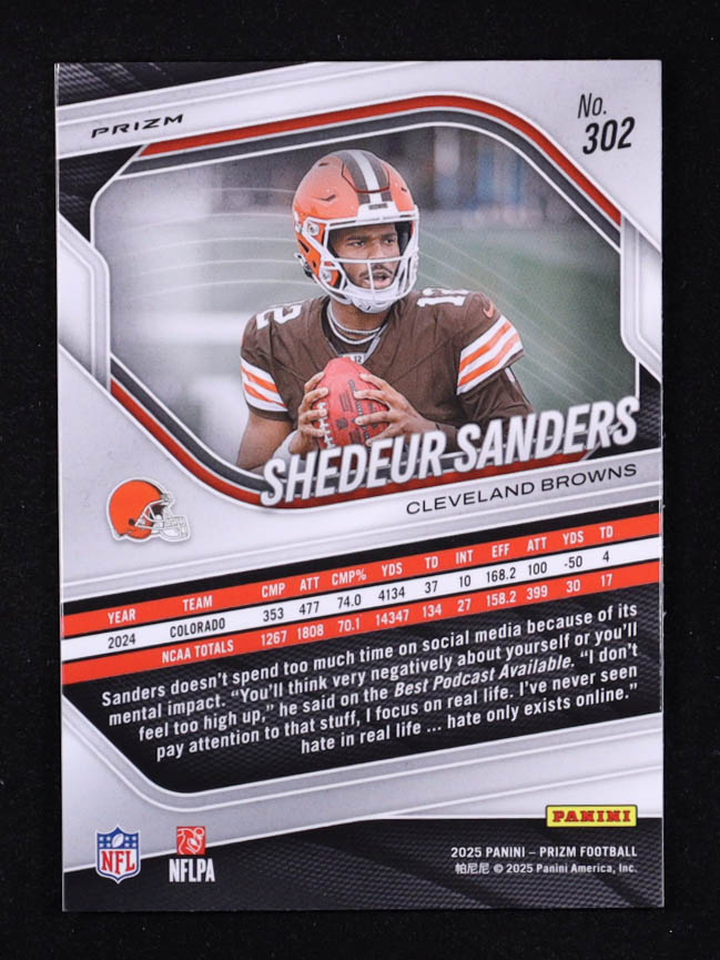 Shedeur Sanders 2025 Panini Prizm Prizms White Disco #302 RC