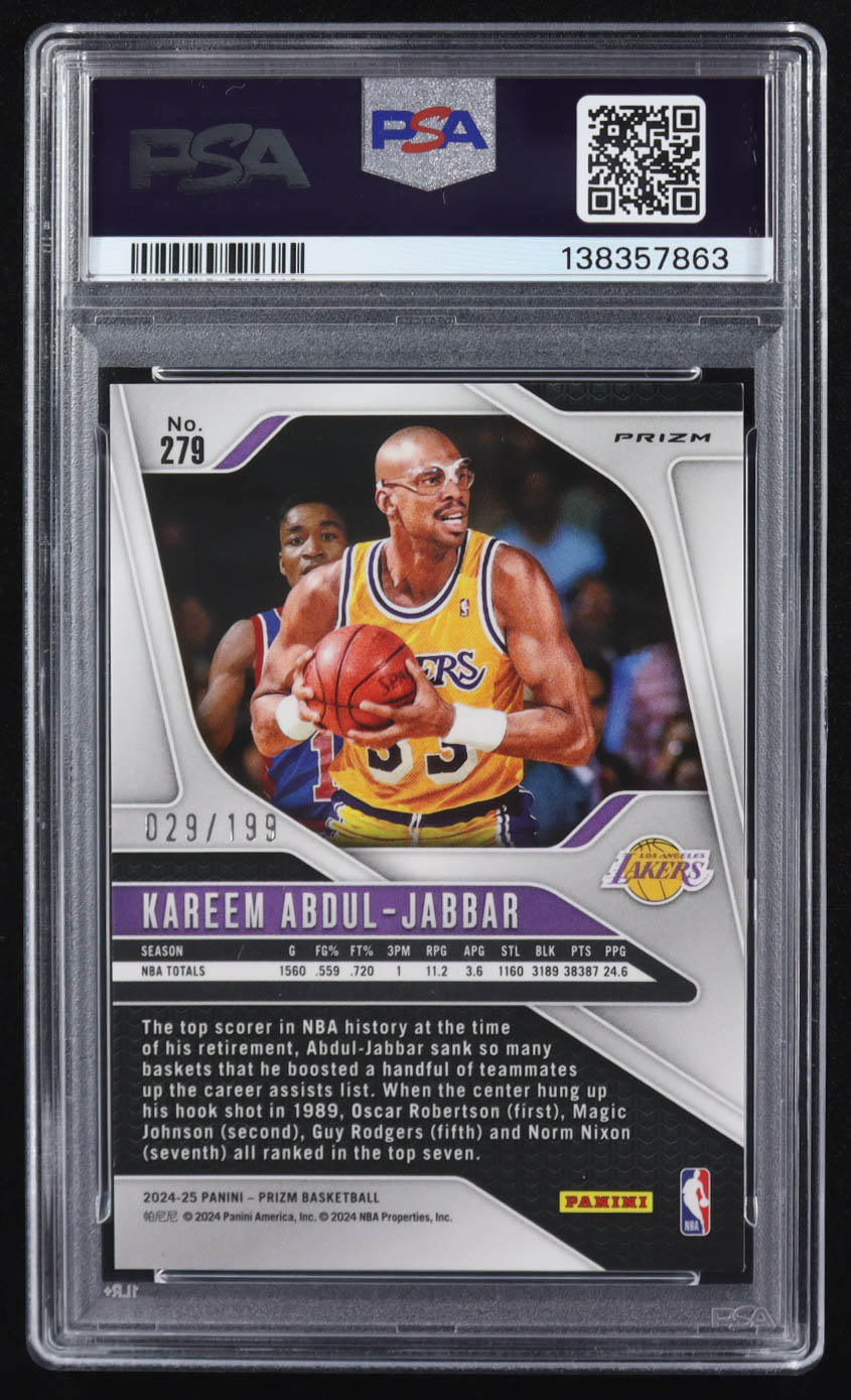 Kareem Abdul-Jabbar 2024-25 Panini Prizm Prizms Blue #279 #29/199 (PSA 9)