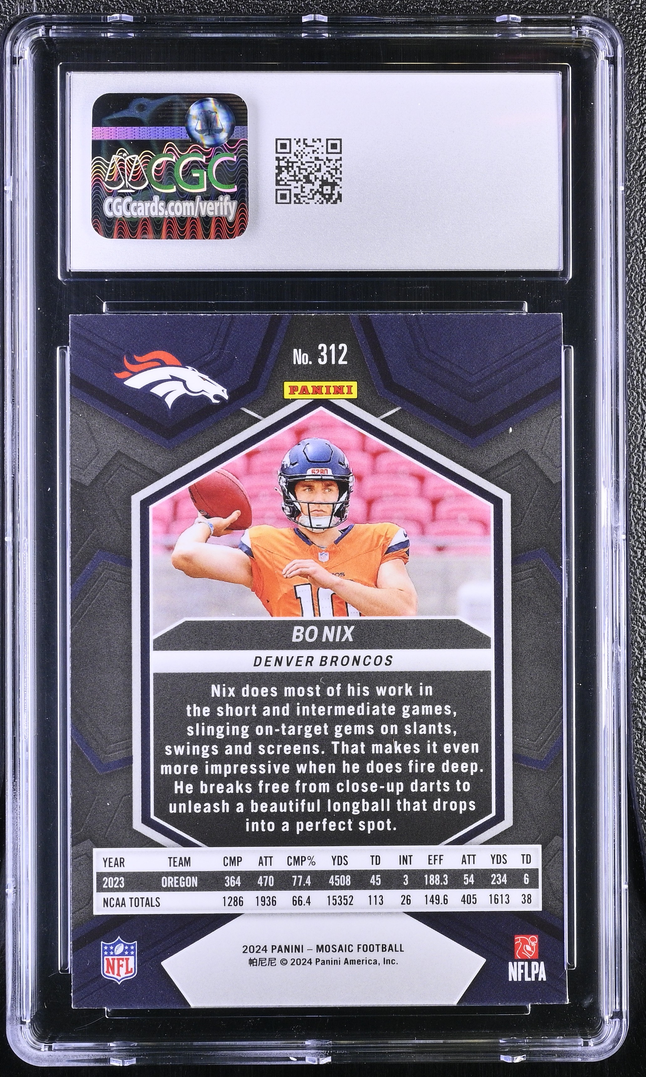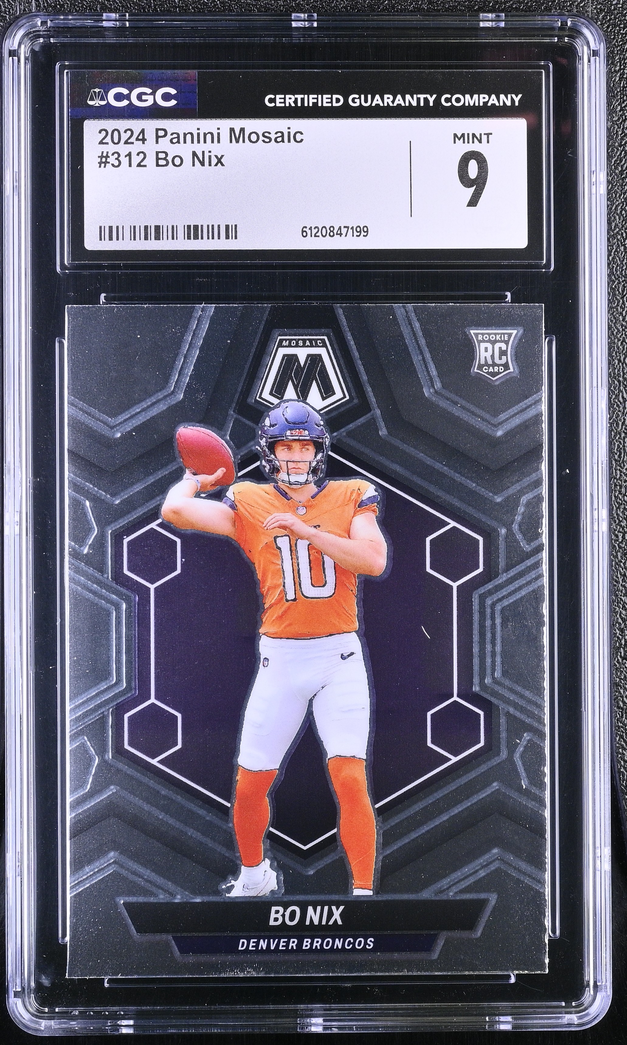 Bo Nix 2024 Panini Mosaic #312 RC (CGC 9)