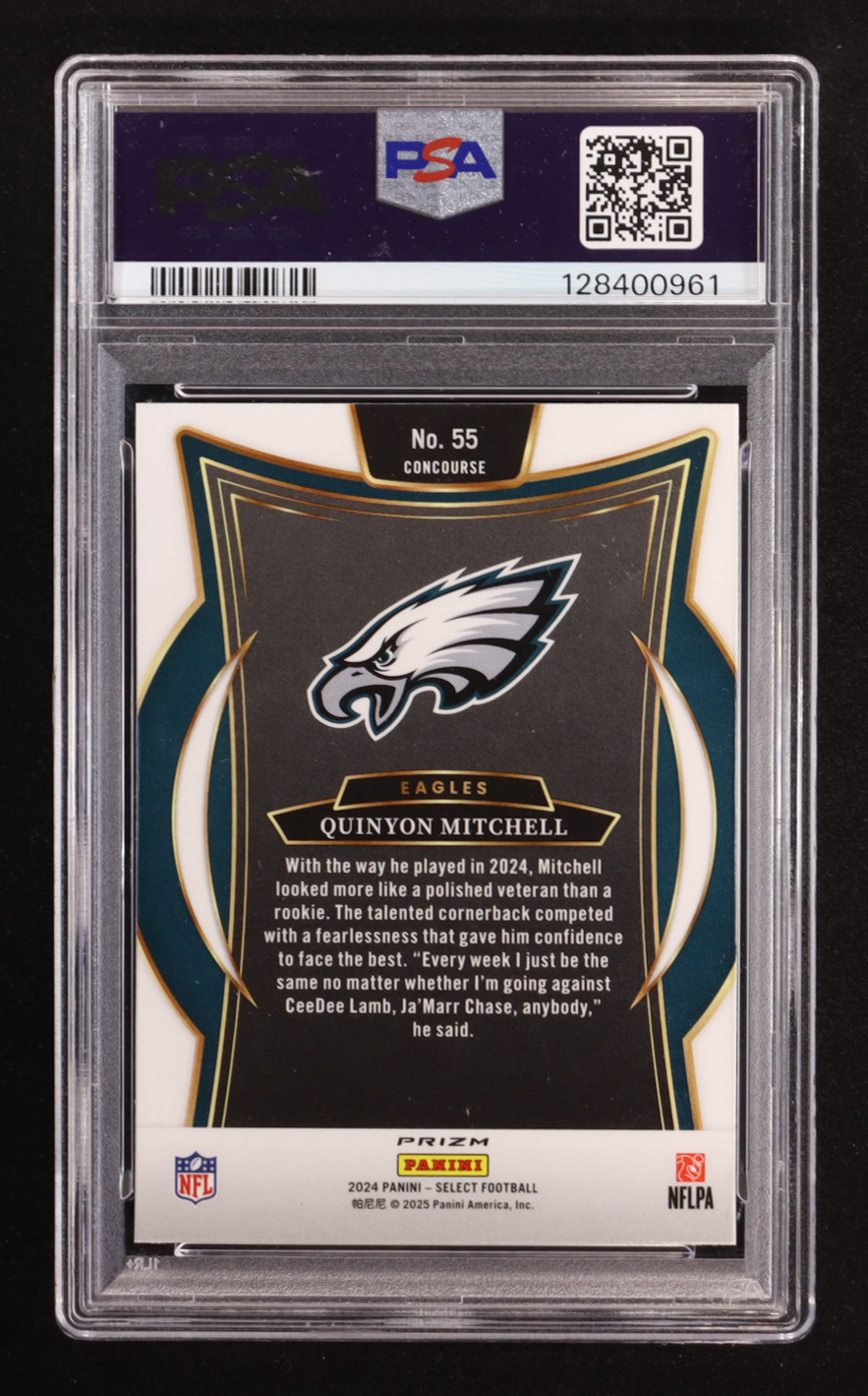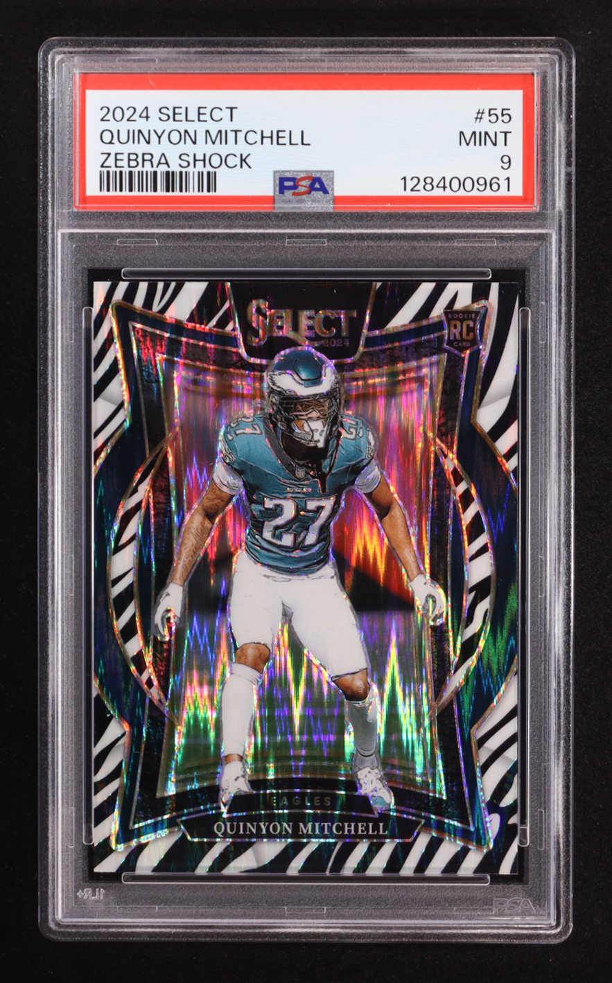 Quinyon Mitchell 2024 Select Prizm Zebra Shock #55 RC (PSA 9)