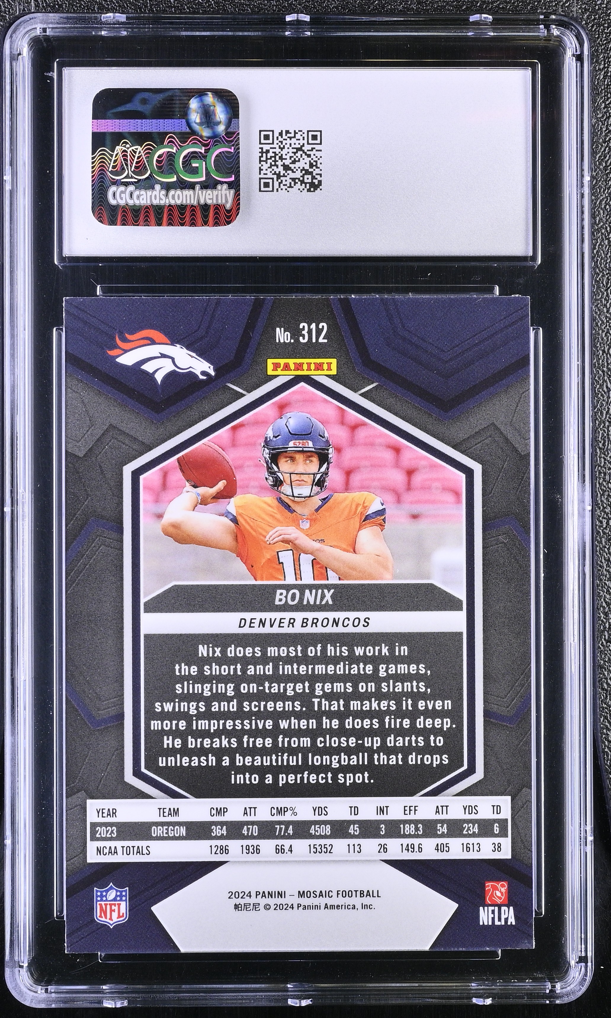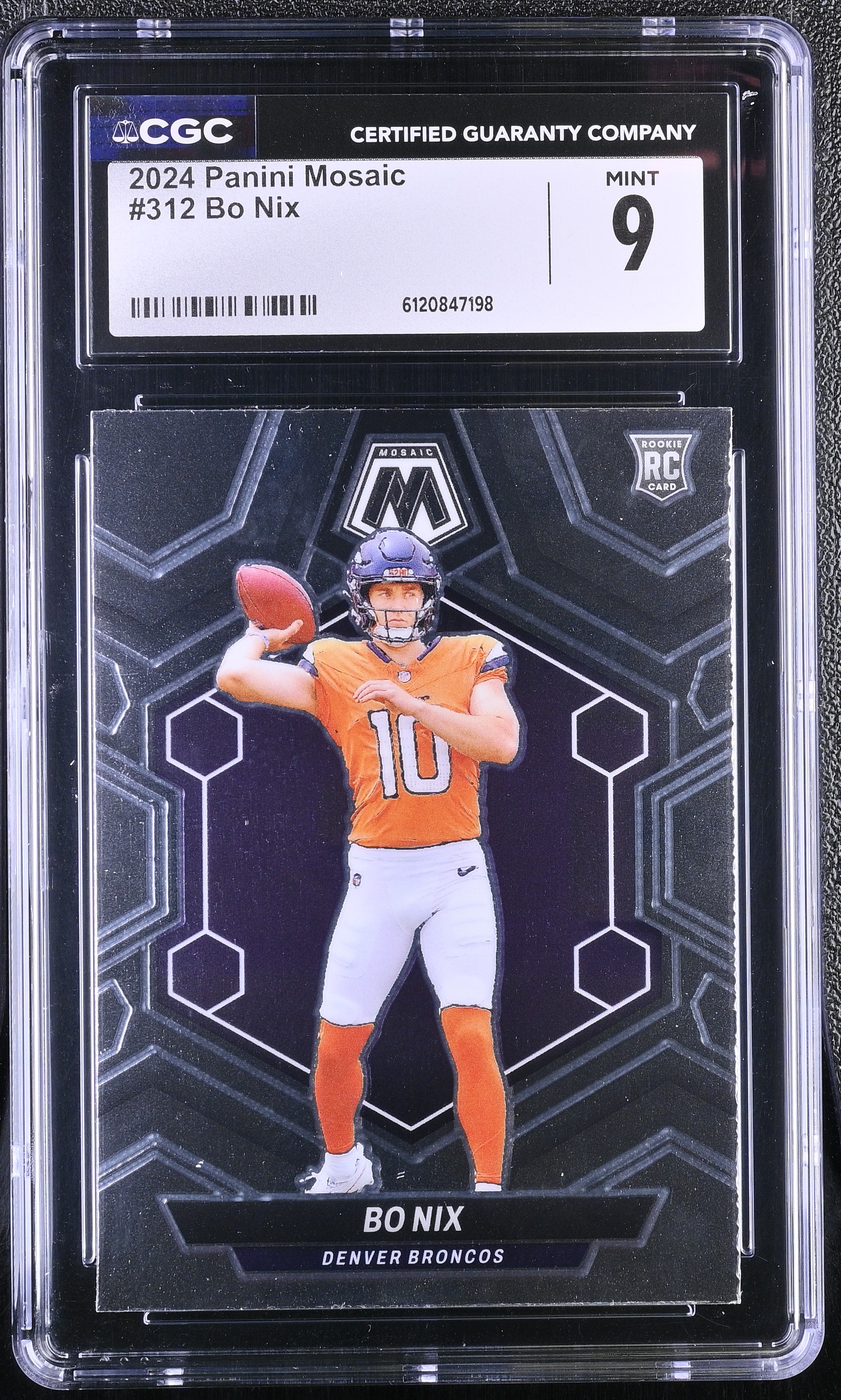 Bo Nix 2024 Panini Mosaic #312 RC (CGC 9)