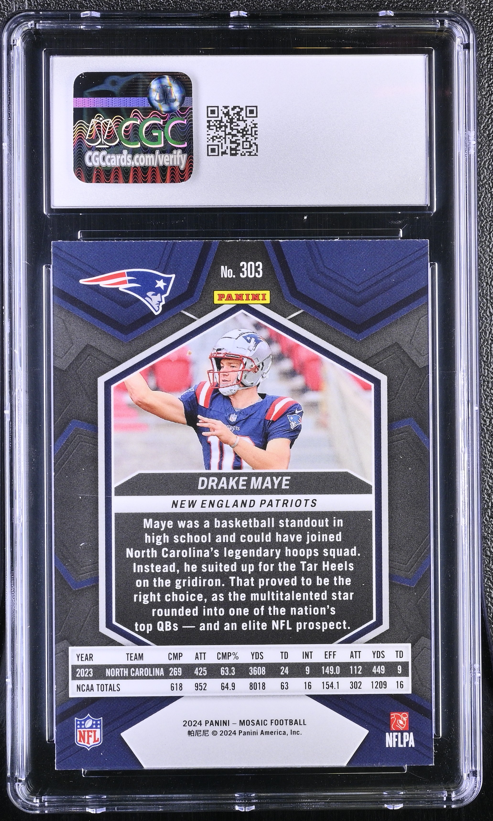 Drake Maye 2024 Panini Mosaic #303 RC (CGC 9)