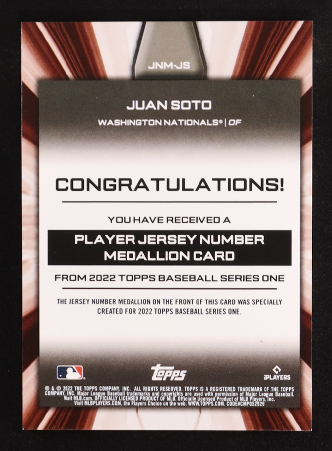 Juan Soto 2022 Topps Commemorative Player Jersey Number Medallions #JNMJS