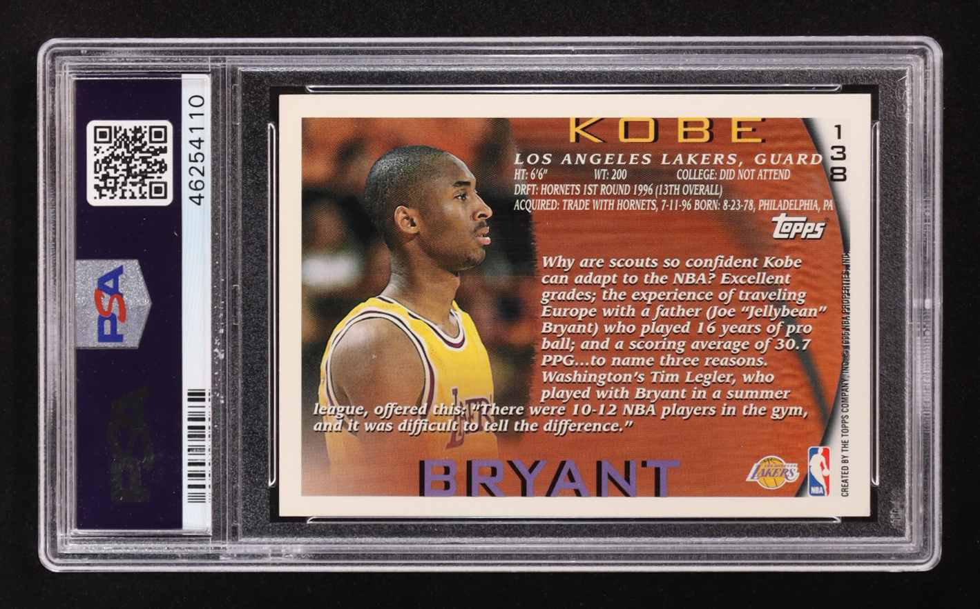 Kobe Bryant 1996-97 Topps #138 RC (PSA 9)