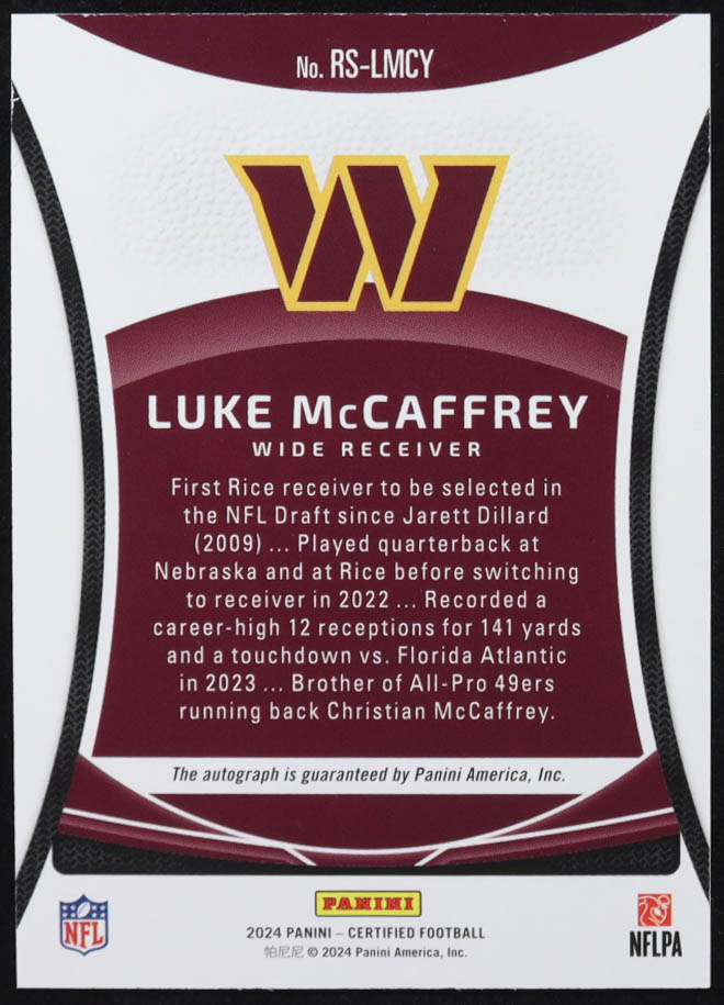 Luke McCaffrey 2024 Certified Rookie Signatures #20 #022/149 RC