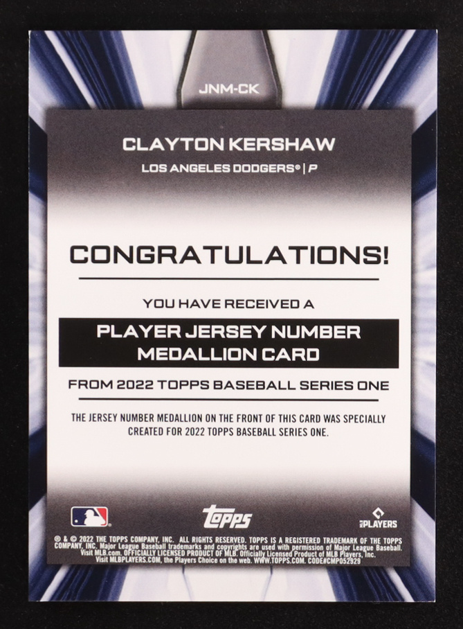 Clayton Kershaw 2022 Topps Commemorative Player Jersey Number Medallions #JNMCK