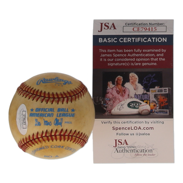 Rawlings Official American League Baseball. Hand-signed by Don Larsen (D. 2020, New York Yankees). Please note, the baseball is naturally toned.