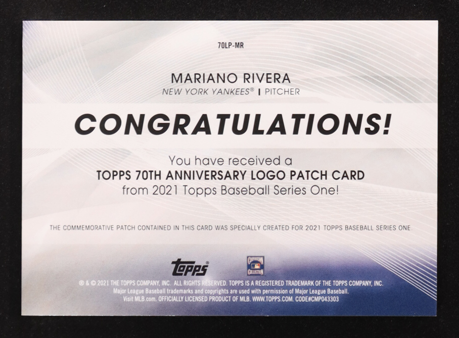 Mariano Rivera 2021 Topps 70th Anniversary Commemorative Logo Patches #70LPMR