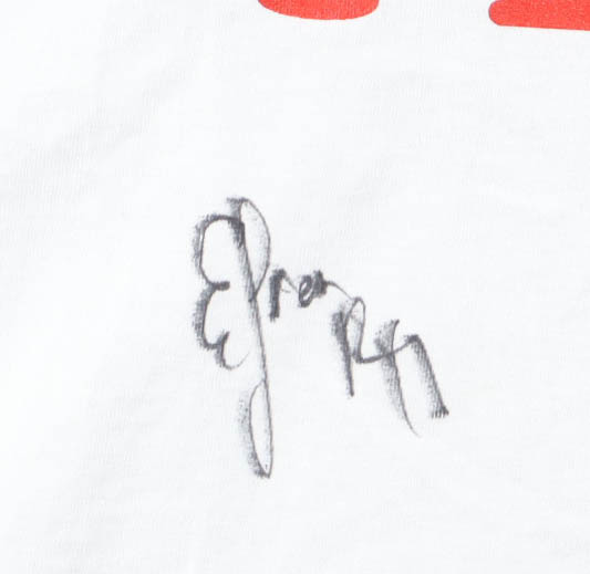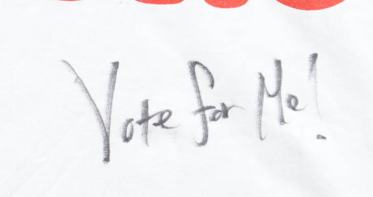 Vote For Pedro t-shirt, size XL, Hand-signed and inscribed by Efren Ramirez (Pedro Sanchez). Please note, there is staining near the collar and left sleeve. See photos regarding the condition of the item.