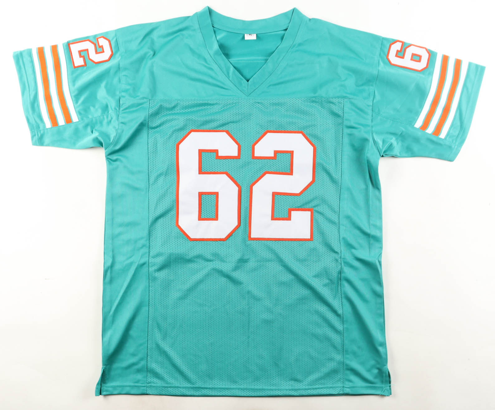 Custom jersey with everything sewn on, size XL. Hand-signed and inscribed by Jim Langer (D. 2019, HOF). Please note, there are ink stains on the reverse number. See photos regarding the condition of the item.