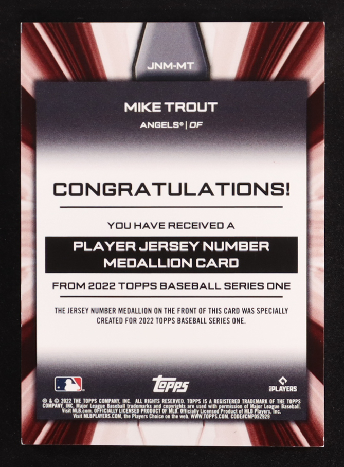 Mike Trout 2022 Topps Commemorative Player Jersey Number Medallions #JNMMT