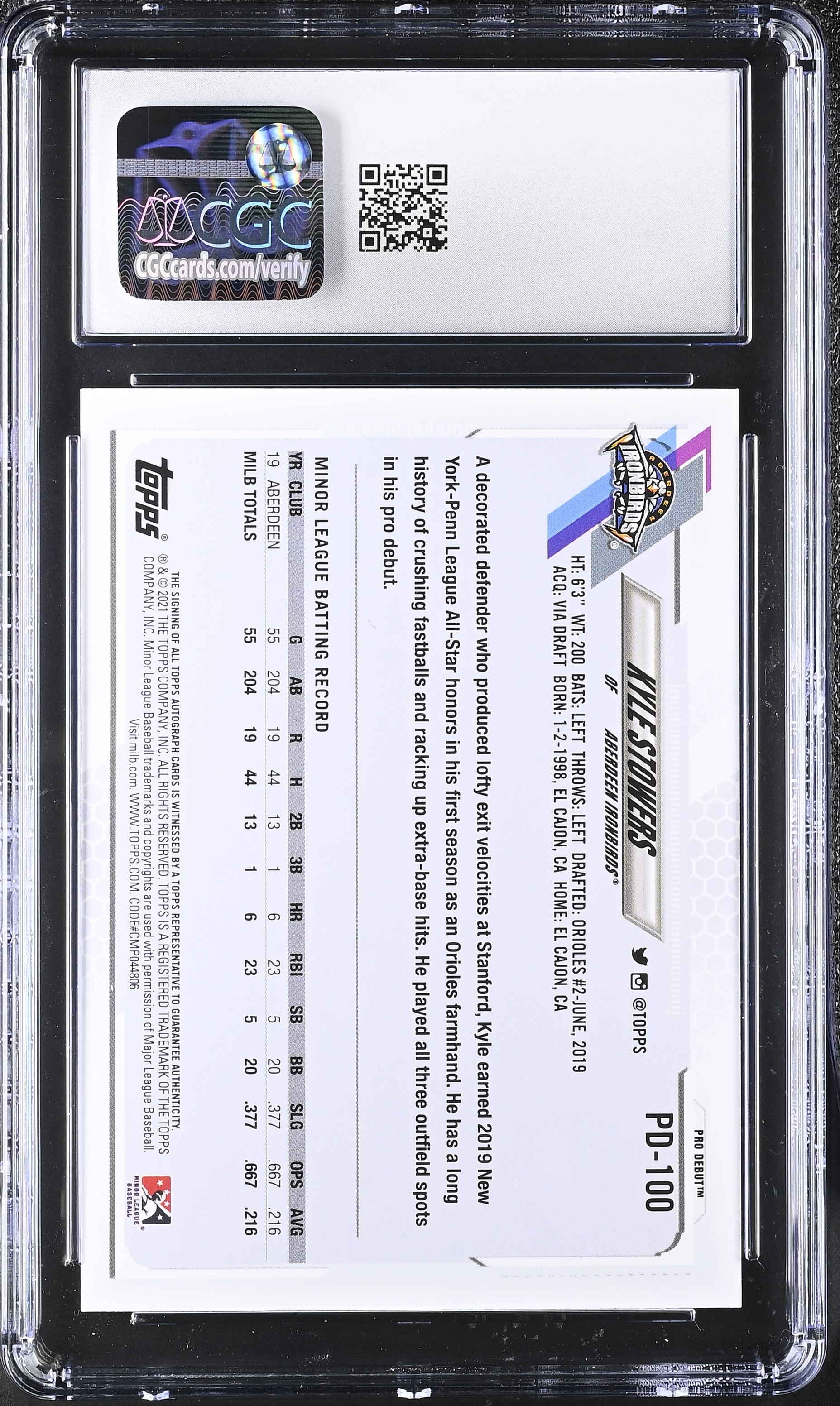 Kyle Stowers 2021 Topps Pro Debut Autographs #PD100 RC (CGC 10 | Autograph Grade CGC 9)