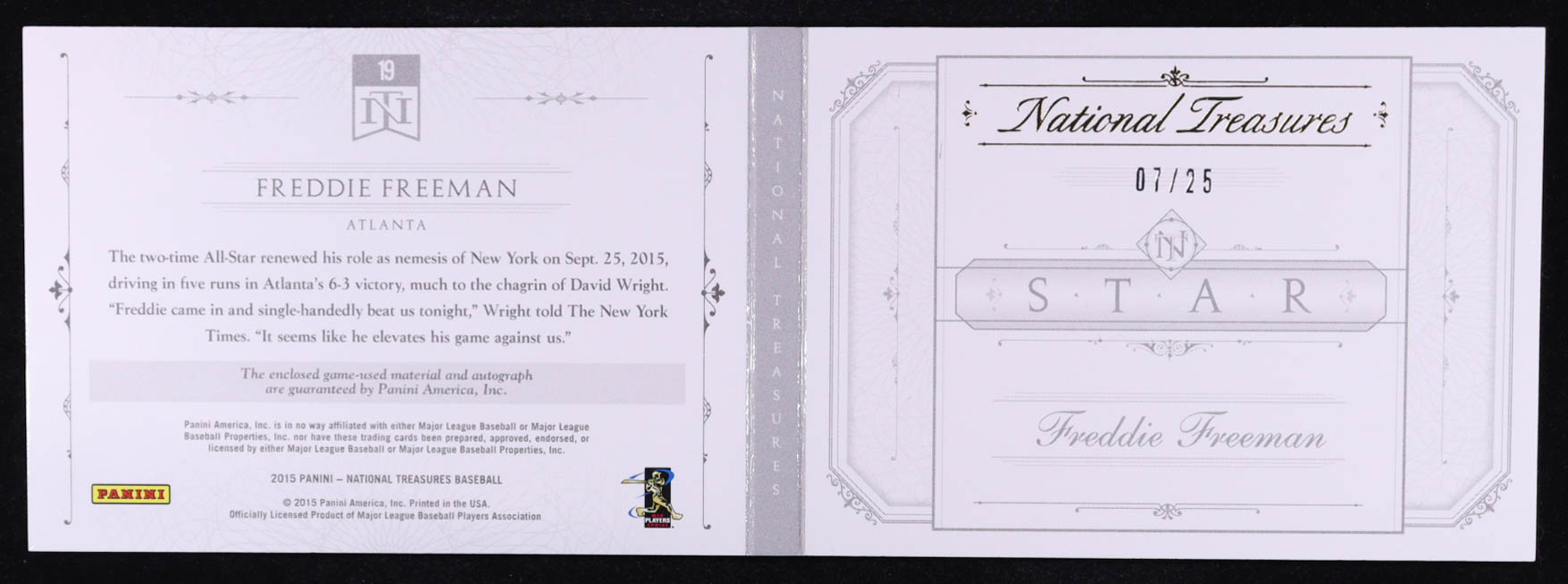 Freddie Freeman 2015 Panini National Treasures NT Stars Booklet Materials Signatures Bat #19 #07/25