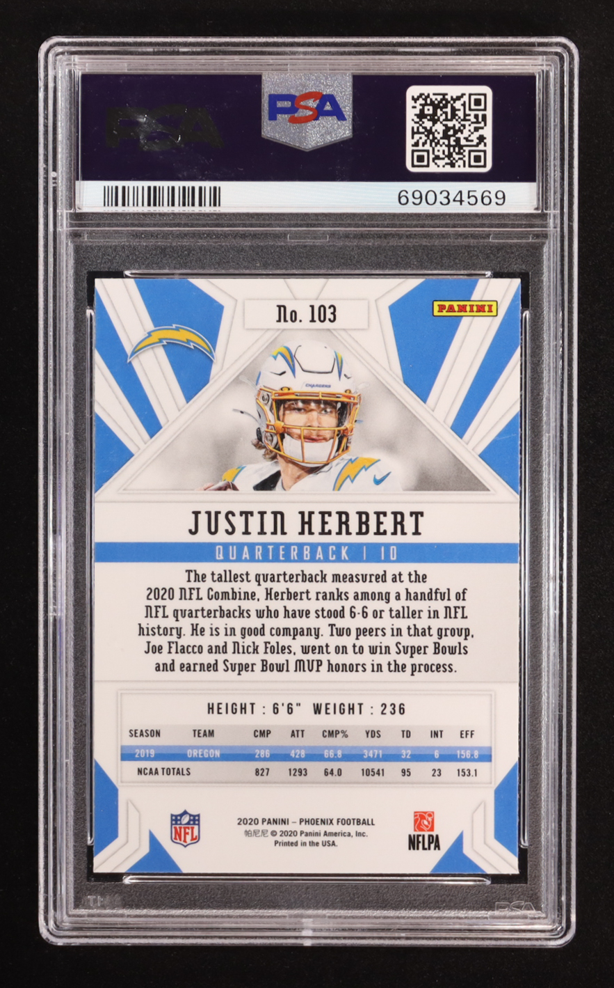 Justin Herbert 2020 Panini Phoenix Fire Burst #103 RC (PSA 10)