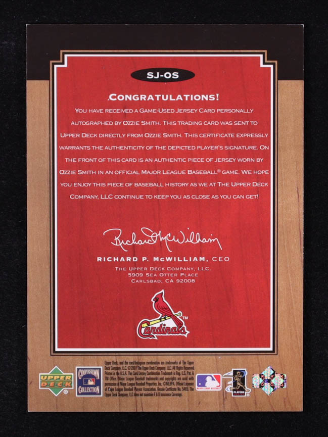 Ozzie Smith 2001 Upper Deck Legends Legendary Game Jersey Autographs #SJOS