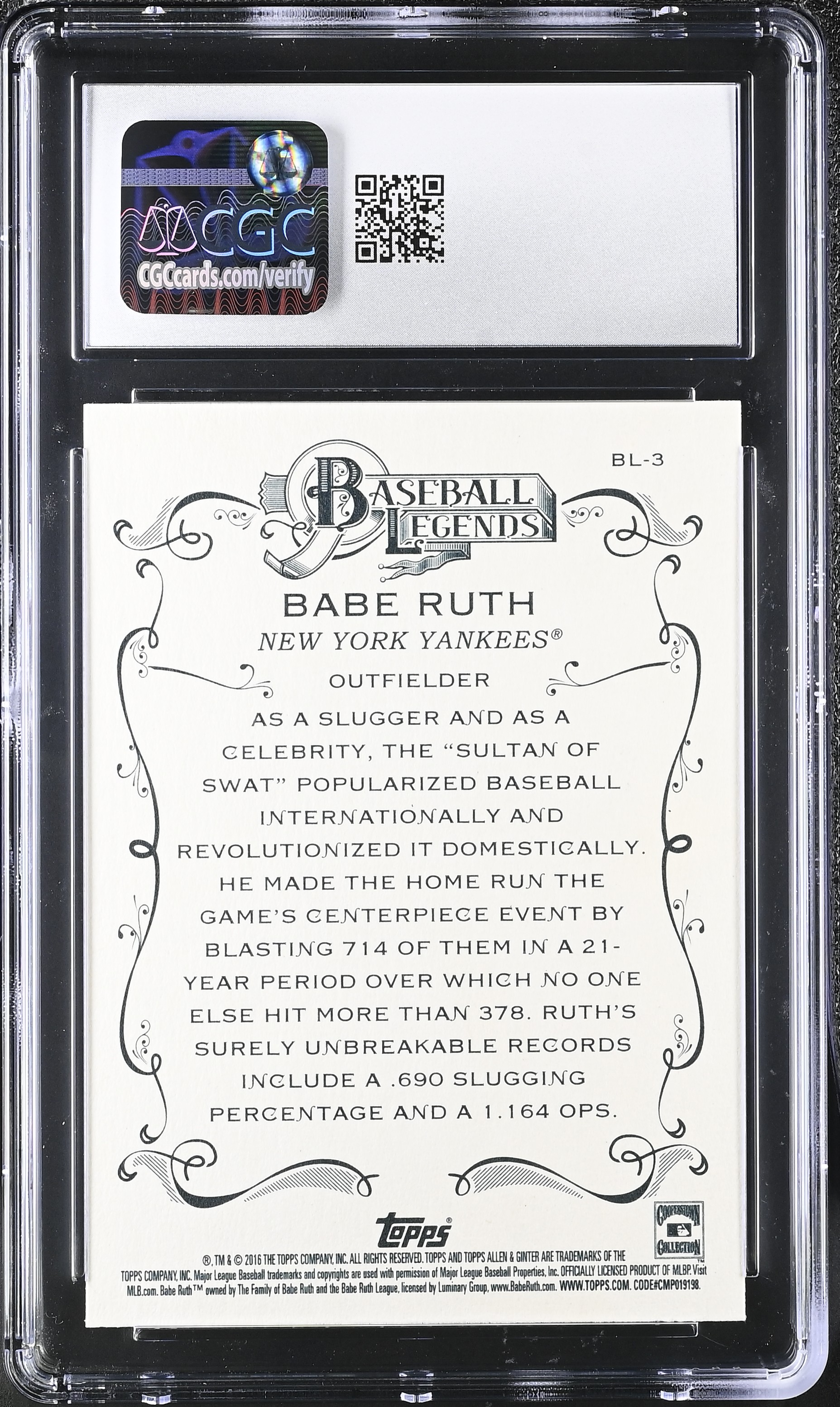 Babe Ruth 2016 Topps Allen and Ginter Baseball Legends #BL3 (CGC 10)