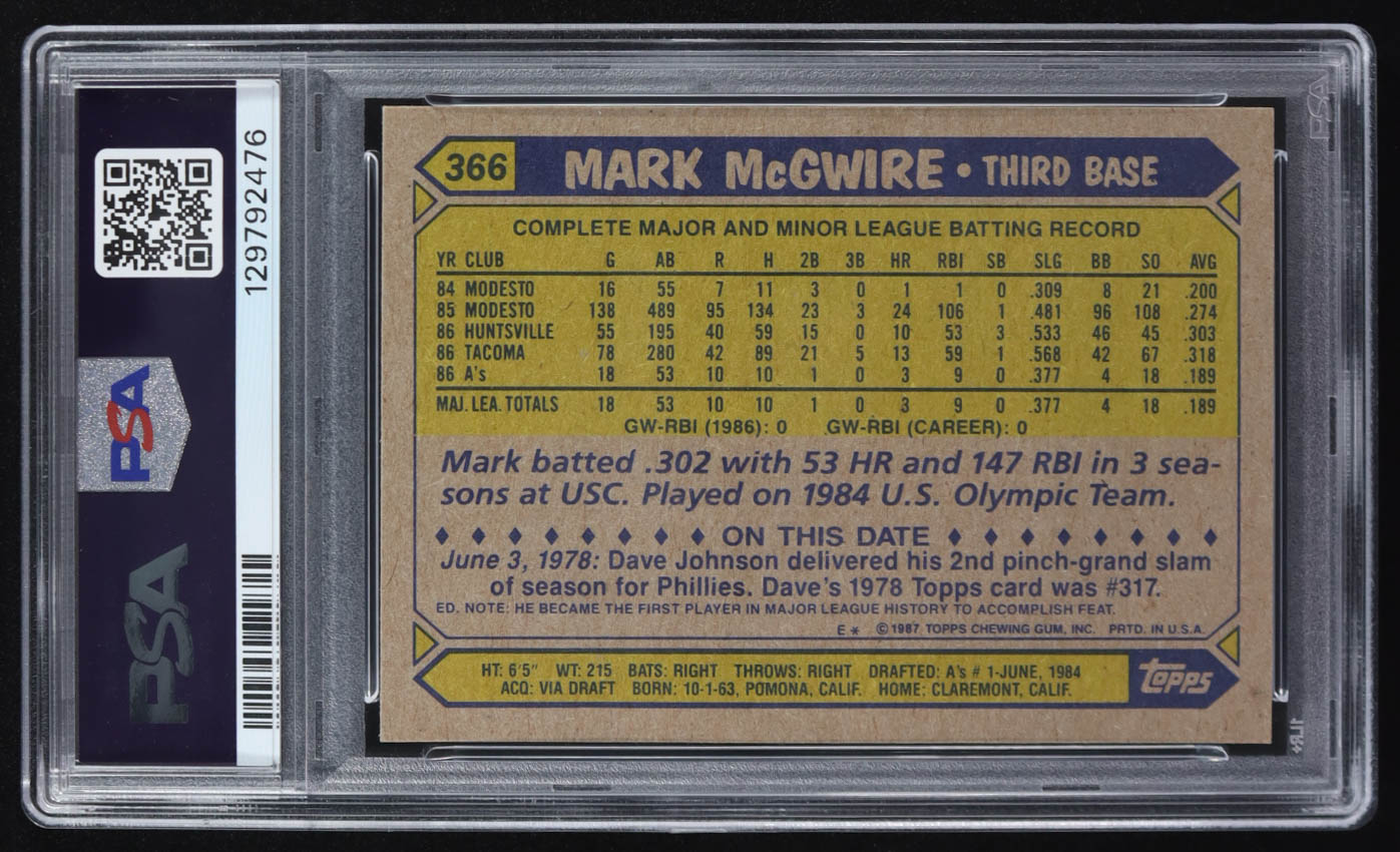 Mark McGwire 1987 Topps #366 RC (PSA 9)