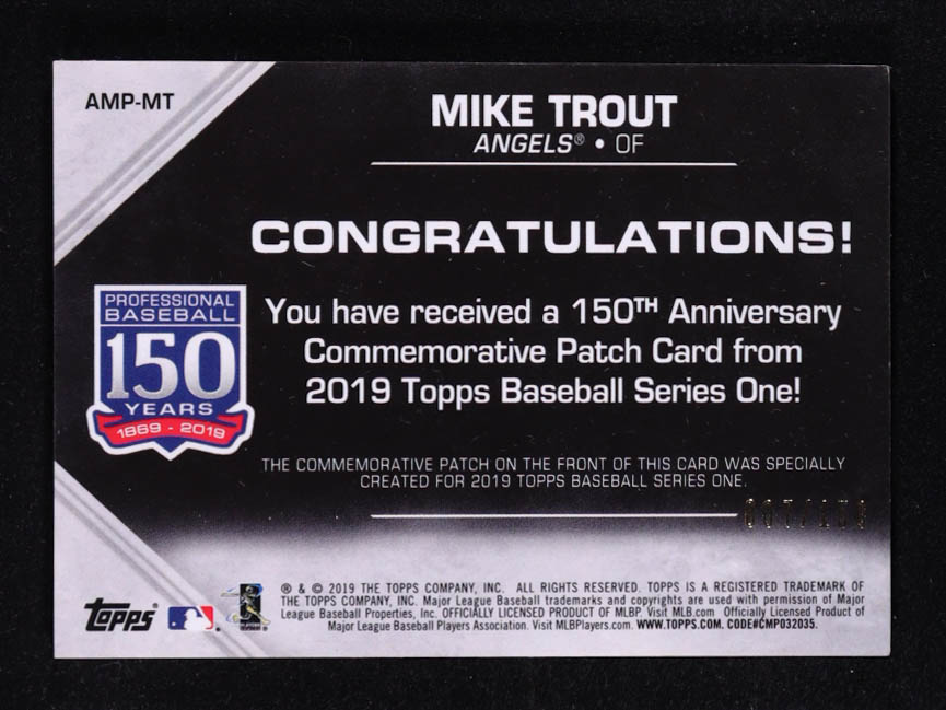 Mike Trout 2019 Topps 150th Anniversary Manufactured Patches 150th Anniversary #AMPMT #007/150