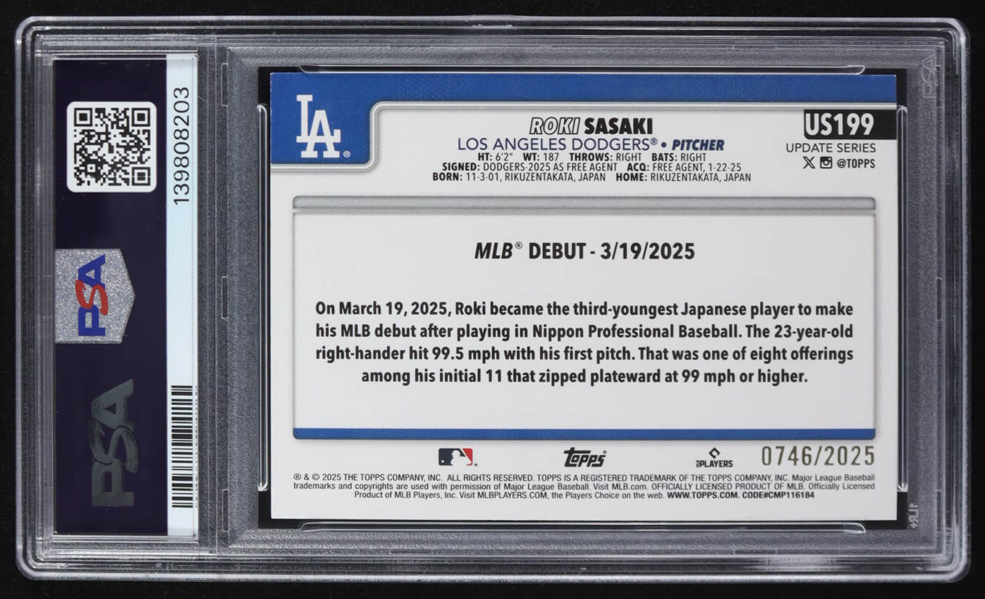 Roki Sasaki 2025 Topps Update Gold #US199 RC #746/2025 (PSA 8.5)