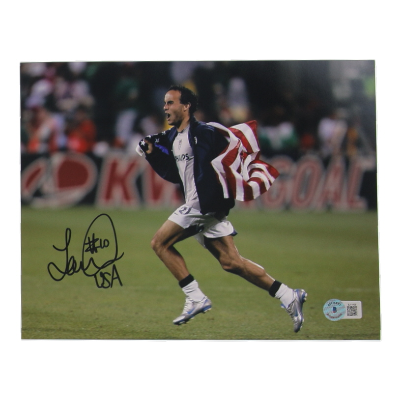 Photo measures 8" x 10" in size. Hand-signed and inscribed by Landon Donovan.