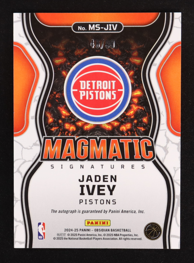 Jaden Ivey 2024-25 Panini Obsidian Magmatic Signatures Electric Etch Orange Flood #37 #46/99