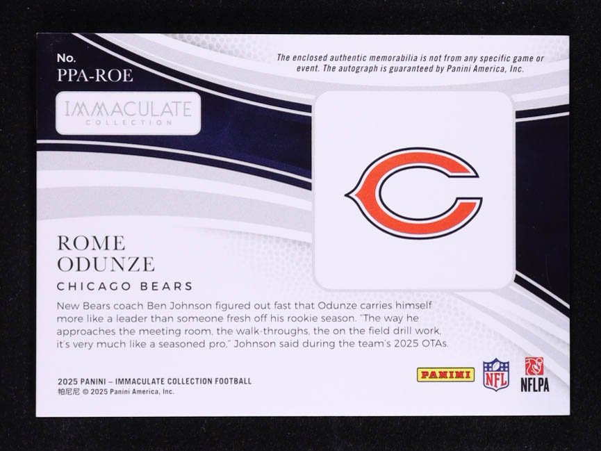 Rome Odunze 2025 Immaculate Collection Premium Patch Autographs #19 #34/99